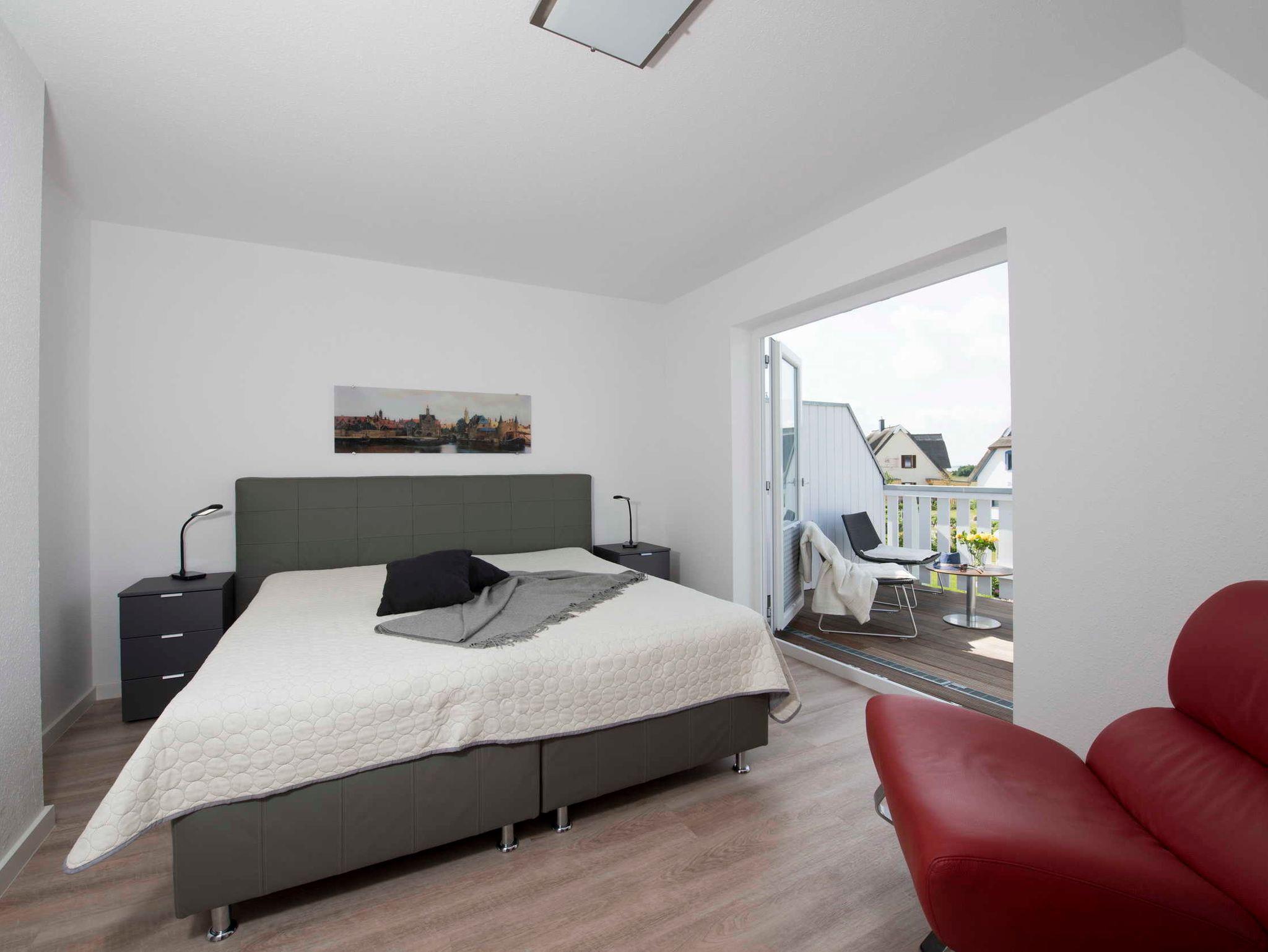 Auf der Terrasse relaxen Sie im Strandkorb oder auf den hochwertigen Gartenmöbeln und genießen den Ausblick. Der Balkon ist ebenfalls mit Gartenmöbeln ausgestattet.