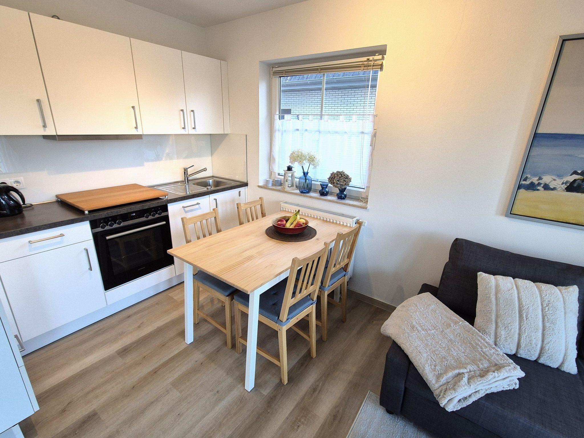 Die gemütliche 2-Zimmer-Wohnung Meeresstrand befindet sich in ruhiger Ortslage des Fischerdörfchens Breege. Der helle Wohnbereich mit bodentiefen Fenstern und Zugang zur Terrasse bietet eine Schlafcouch, einen kuscheligen Sessel, einen großen Flachbildfernseher und eine kleine Auswahl an Büchern und Spielen für Tage mit launischem Ostsee-Wetter. Die offene Küche mit Esstisch grenzt direkt an den Wohnbereich, ist voll ausgestattet und lädt dazu ein, leckere Mahlzeiten zu zaubern ? sofern Sie einmal nicht bei den guten Restaurants im Ort einkehren möchten. Im Schlafzimmer finden Sie ein 1,80 Meter breites Doppelbett (Boxspringbett mit durchgehender Matratze) sowie einen geräumigen Schrank vor. Die großzügige Terrasse mit umgebendem Garten ist mit Tisch und Stühlen ausgestattet und lädt dazu ein, die Abendsonne zu genießen und die einmalig frische Luft zu tanken. Das Bad mit Dusche bietet eine Waschmaschine mit Trockner. Ein fester Parkplatz ist im Angebot enthalten. Auch ohne Auto sind sie schnell am Strand (ca. 1 km) oder spazieren nach wenigen Schritten quer durch die Felder oder erkunden den duftenden Nadelwald. Hunde sind willkommen. Der Hundestrand befindet sich ebenfalls in Laufentfernung.