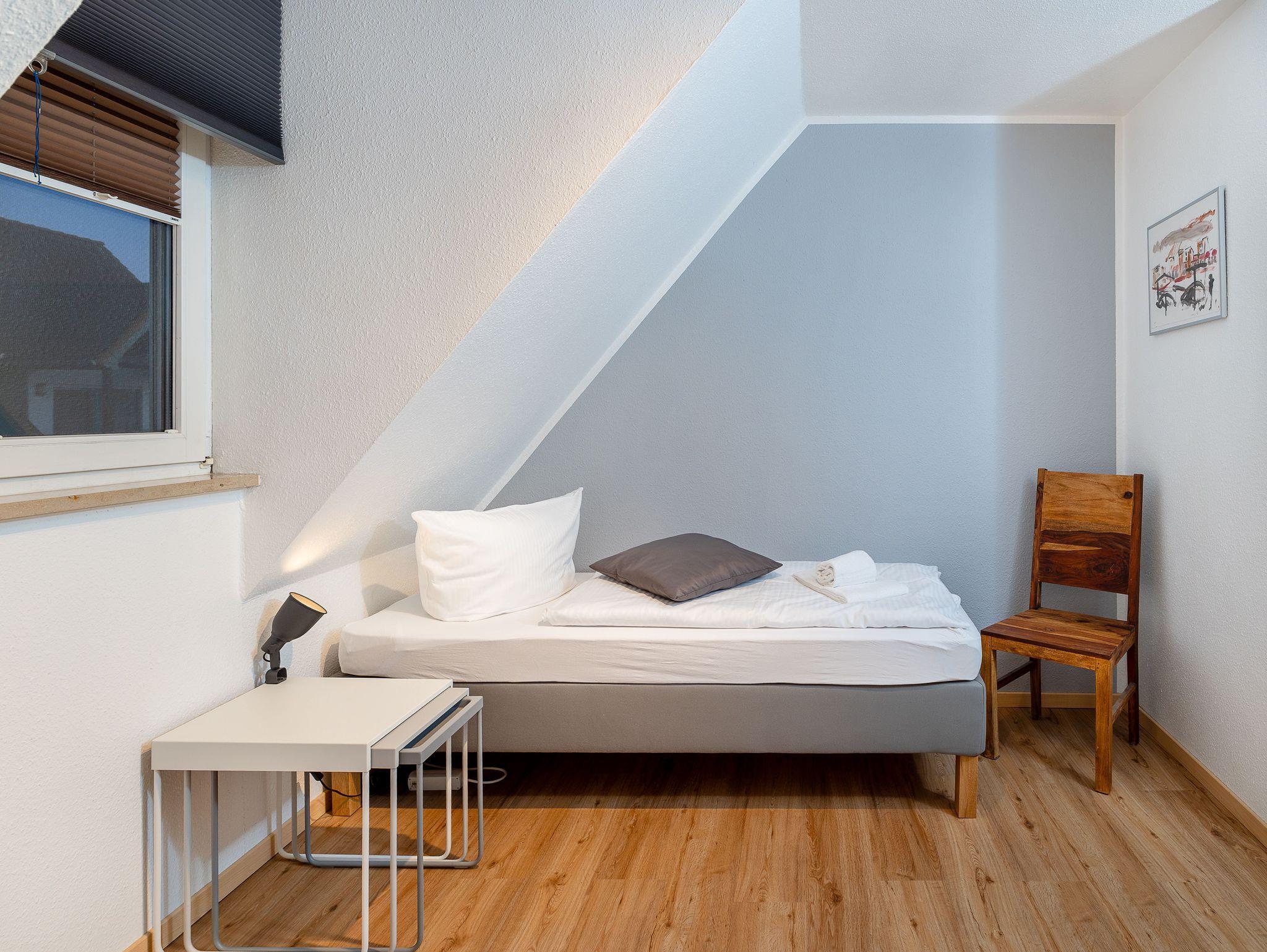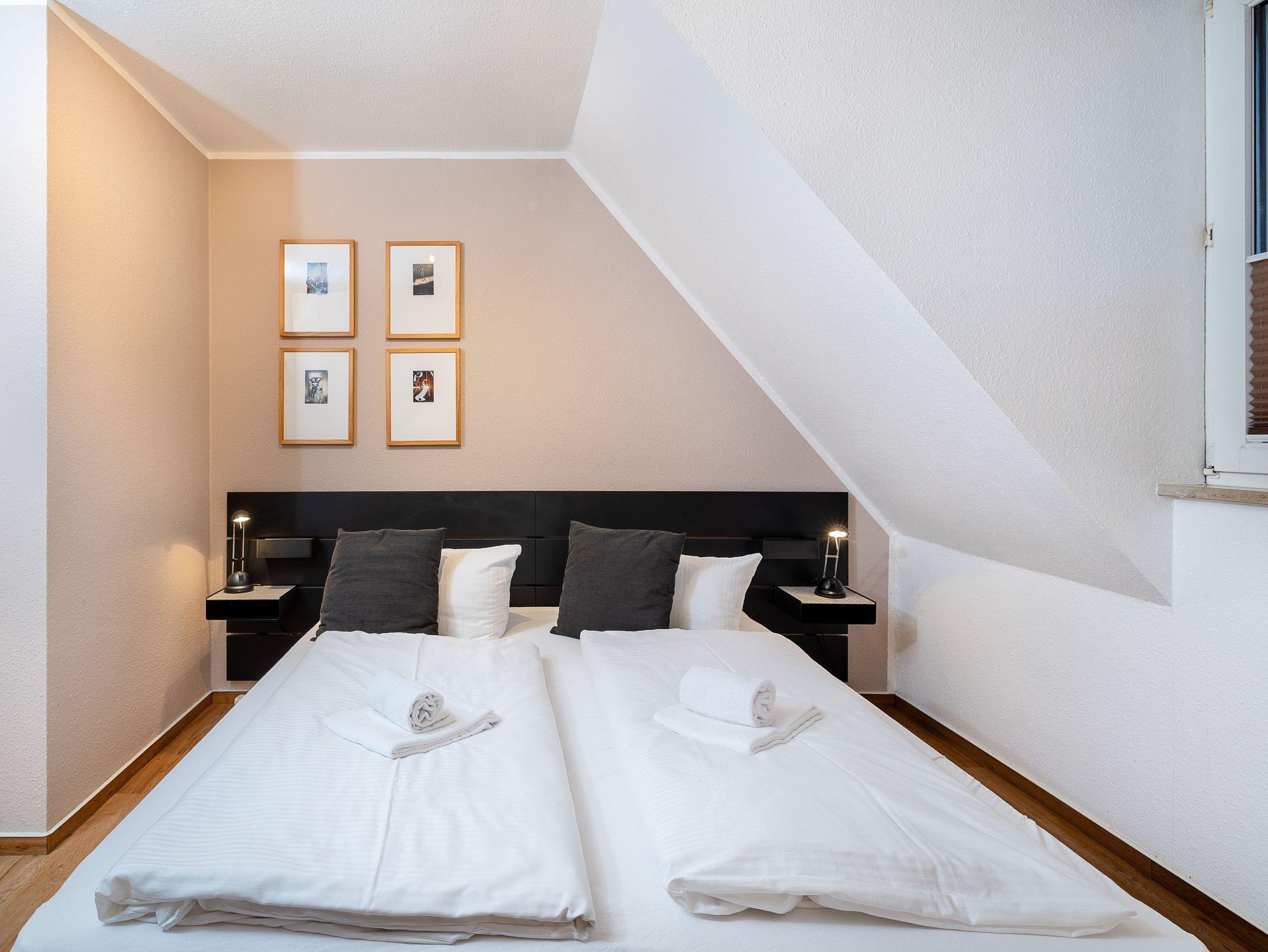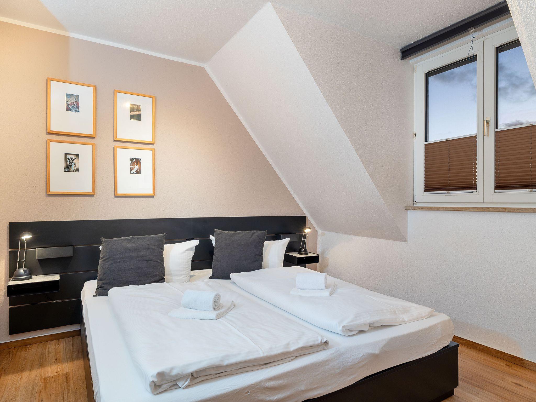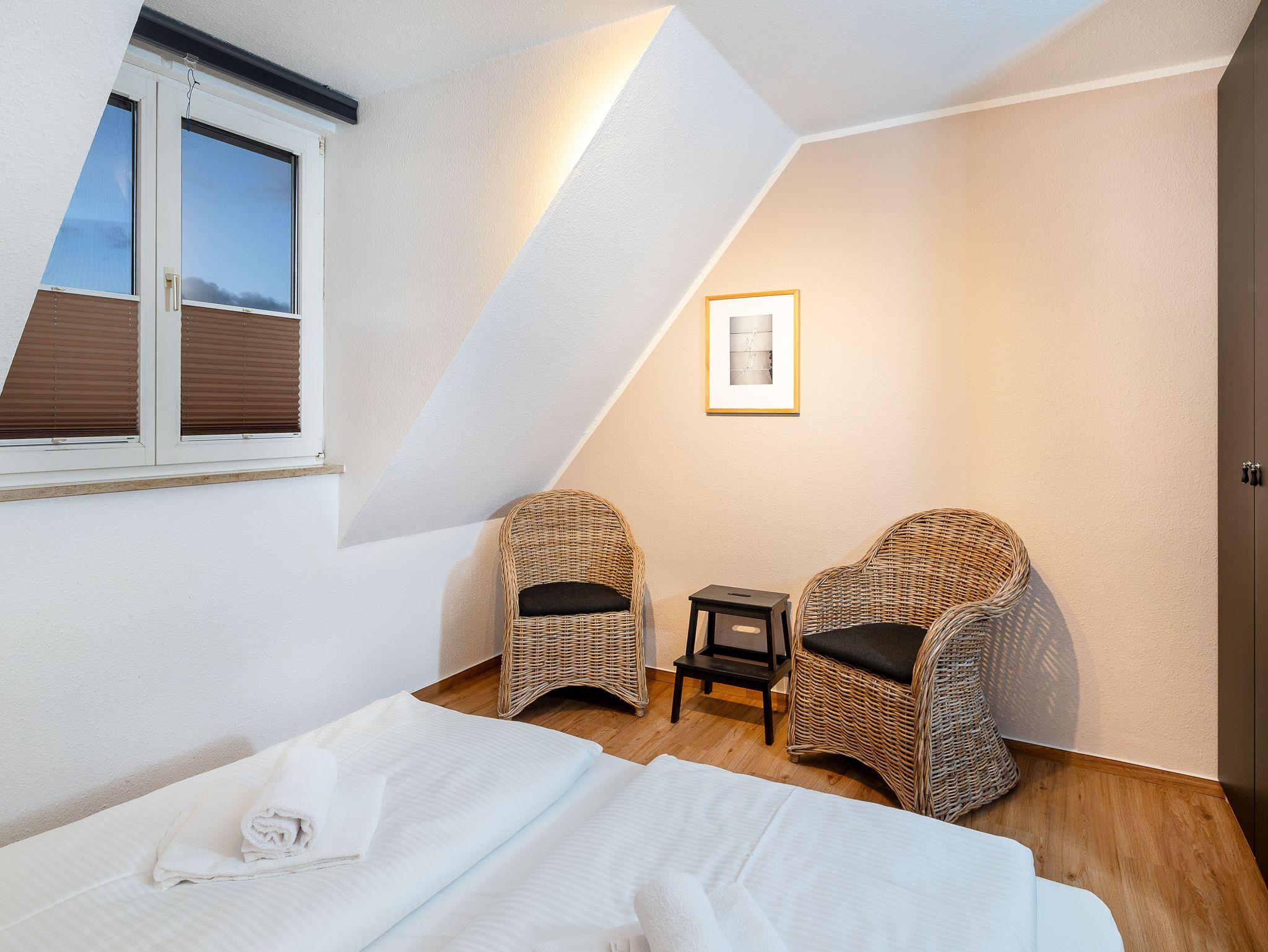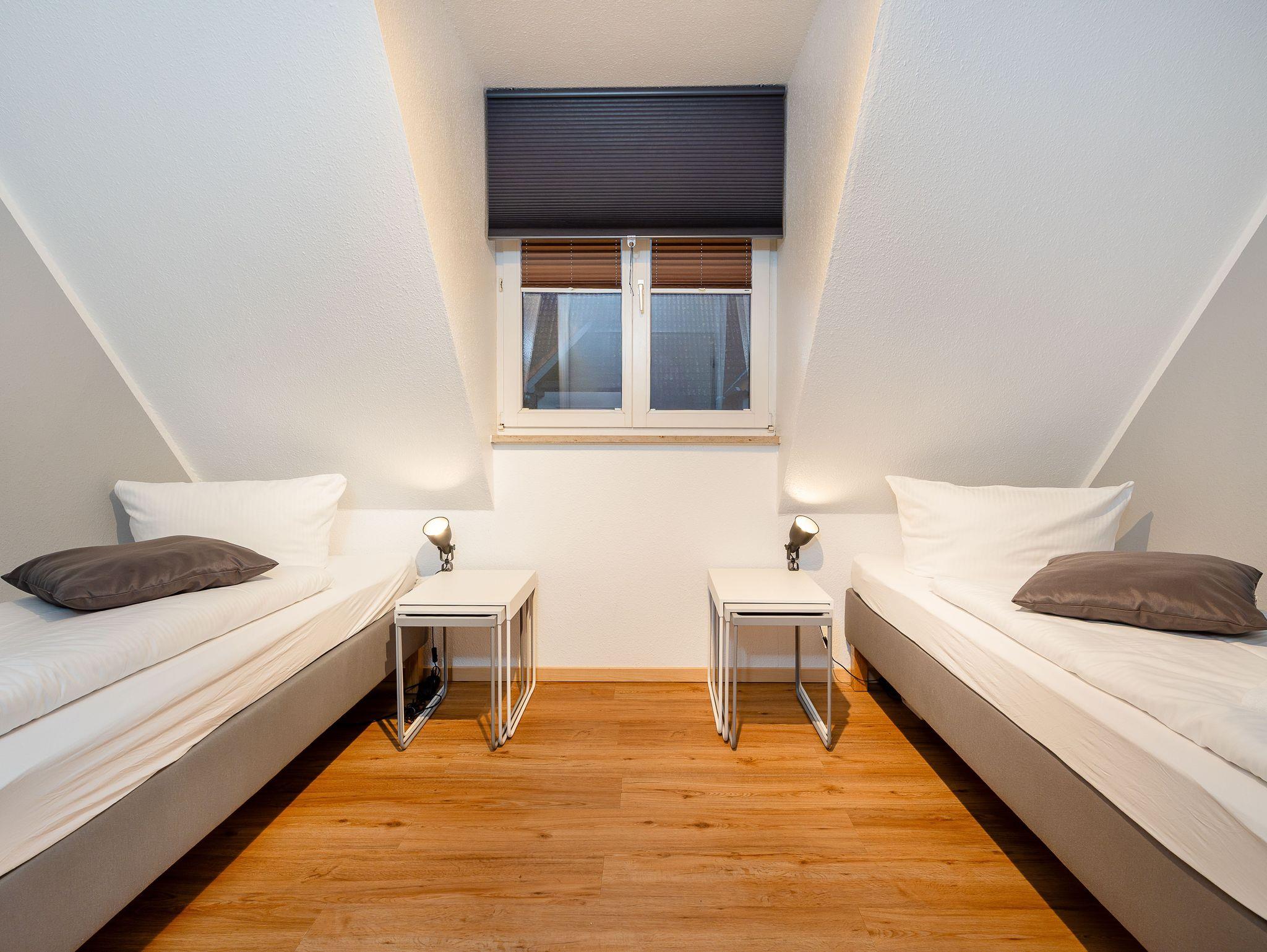Zwei einladende Schlafzimmer eines mit Doppelbett, eines mit zwei Einzelbetten sorgen für erholsame Nächte und bieten ausreichend Platz für bis zu vier Personen.