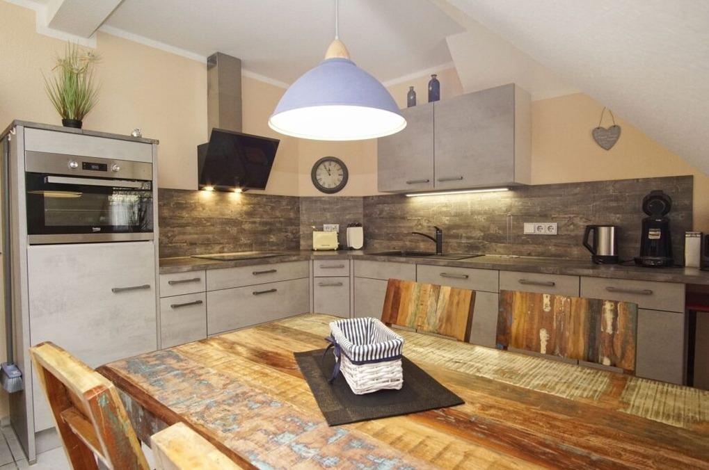In der komplett ausgestattete Küche finden sie einen Geschirrspüler, einen Kühlschrank, zwei Kaffeemaschinen (für gemahlene Kaffebohnen oder Kaffee-Pads), eine Mikrowelle, einen Wasserkocher, einen Backofen, einen 4- Plattenherd und vieles mehr.