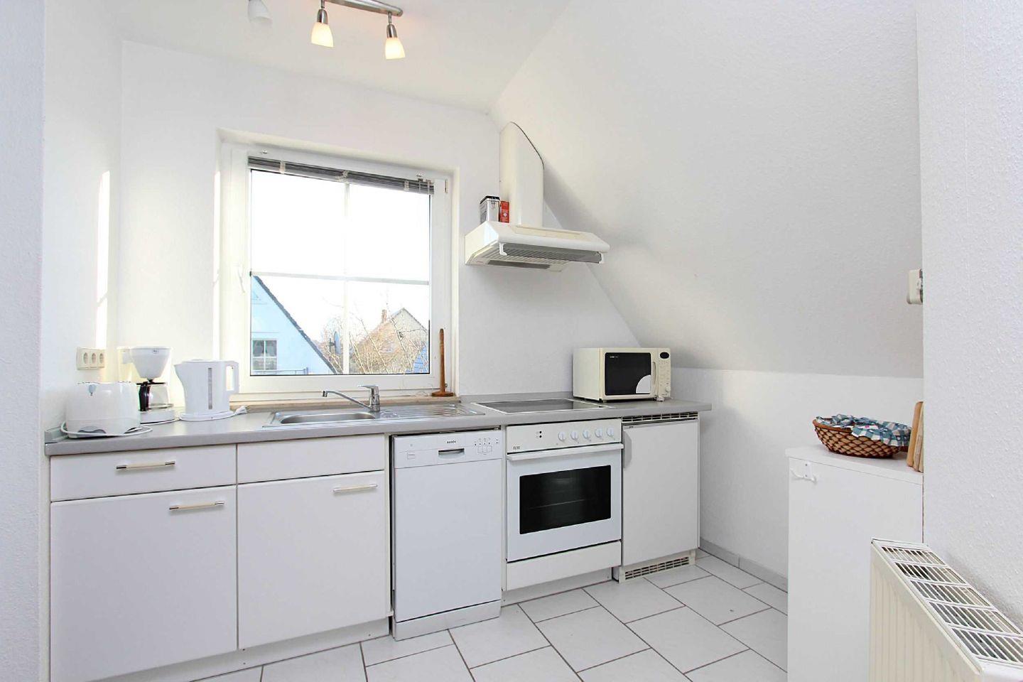 KÜCHE // offene Küche, 4-Plattenherd, Kühlschrank, Spülmaschine, Backofen, Mikrowelle, Toaster, Wasserkocher, Kaffeemaschine, reichlich Besteck, Geschirr und Küchenutensilien ++