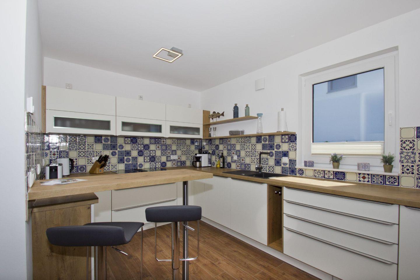 KÜCHE // offene Küche, 4-Platten Cerankochfeld, Spülmaschine, Kühlschrank mit Gefrierfach, Backofen, Toaster, Wasserkocher, Kaffeemaschine, reichlich Besteck, Geschirr und Küchenutensilien ++