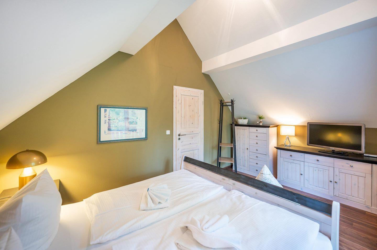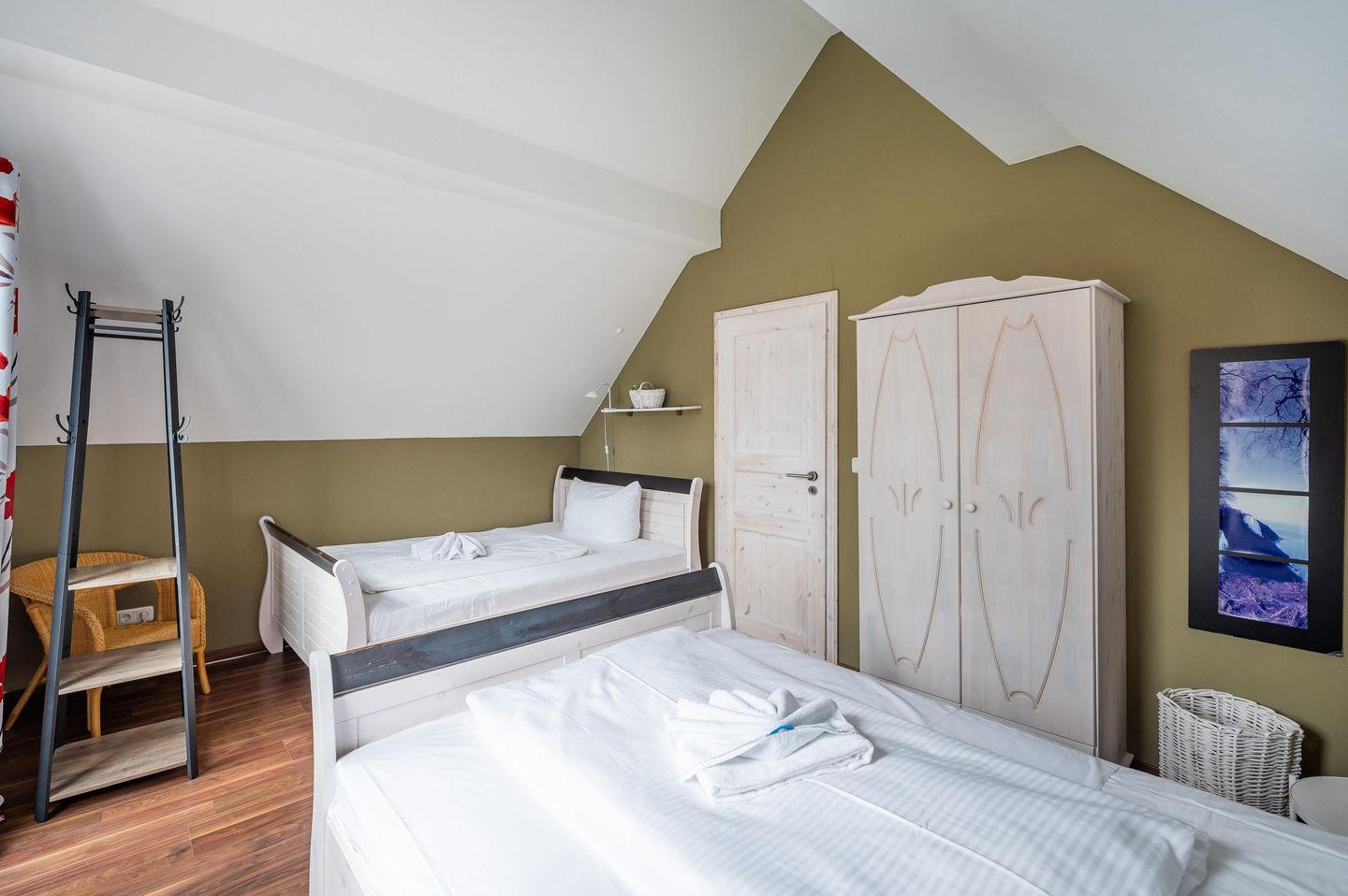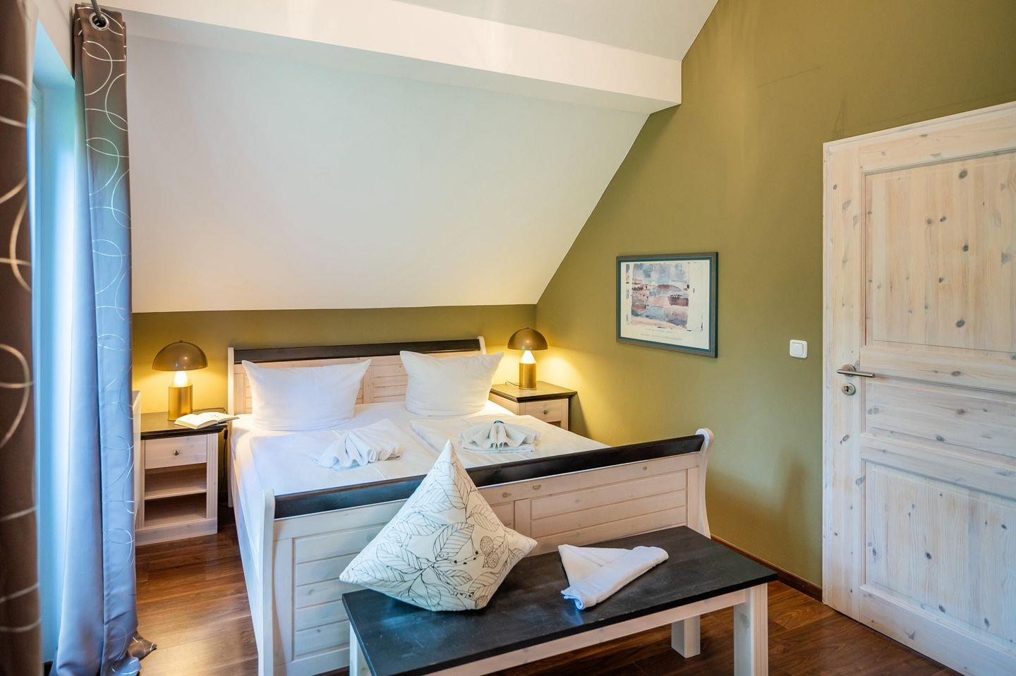 In nur 500 m erreichen Sie einen der schönsten Strände Rügens, die 10 km lange Schaabe. Ausgedehnte Spaziergänge, Fahrradtouren und Bootsausflüge lassen Sie den Alltag schnell vergessen. In der Nähe befinden sich zahlreiche Ausflugsziele wie das Kap Arkona mit seinen zwei Leuchttürmen, die spektakulären Kreidefelsen oder die verwunschene, autofreie Insel Hiddensee, die Sie in den Sommermonaten direkt von Breege aus mit dem Schiff erreichen können. Genießen Sie die Fahrt durch die herrliche Boddenlandschaft – ein weiteres mögliches Ziel sind die berühmten Störtebeker Festspiele in Ralswiek.
