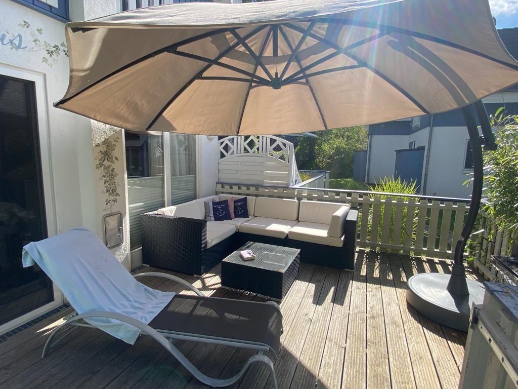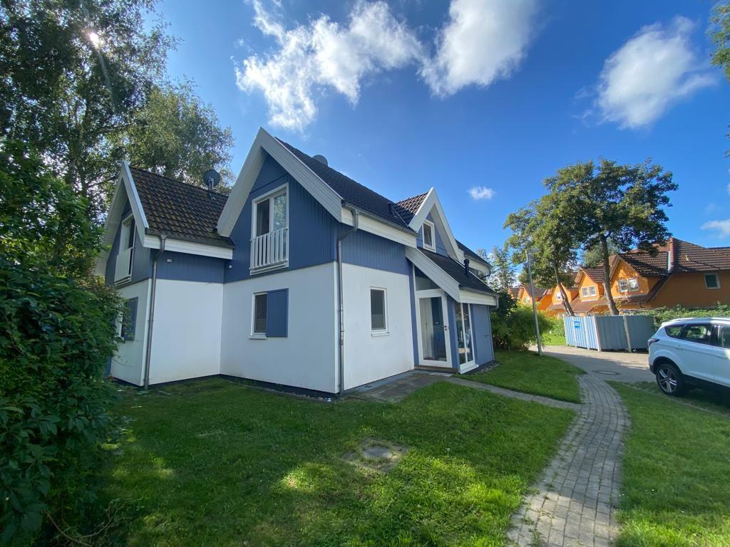 Idyllische Doppelhaushälfte im skandinavischen Stil nahe Ostseestrand und Hafen.