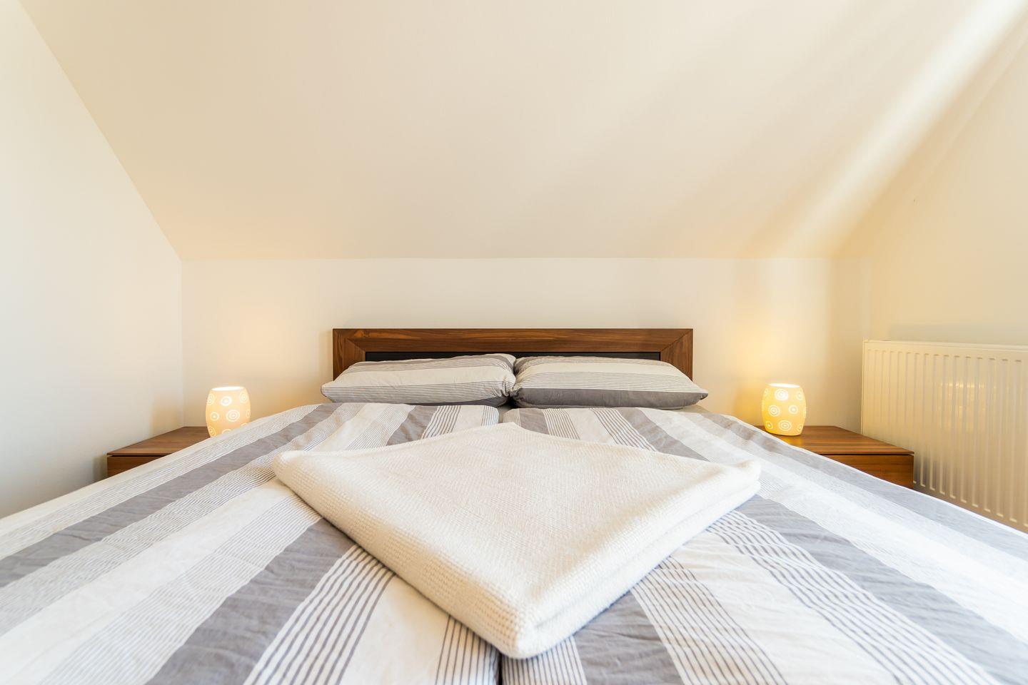 Im “Karhunmökki” heißt es nicht “Moin”, sondern “Moi” – wie der Finne sagt. Diese charmante Doppelhaushälfte im skandinavischen Stil bietet auf zwei Etagen ein behagliches Urlaubsdomizil für bis zu 4 Personen und ein Kleinkind. Ein Kinderreisebett (ohne Bettzeug) und ein Hochstuhl steht für die kleinen Entdeckerinnen bereit. Die komplett ausgestattete Küche mit modernen Einbaugeräten lässt keine Wünsche offen und macht gemeinsames Kochen zum Vergnügen. Der helle Wohnbereich, geschmackvoll eingerichtet und mit einem Kaminofen ausgestattet, lädt zu gemütlichen Abenden voller angeregter Konversation ein. Für Erholung sorgen zwei Schlafräume mit bodentiefen Fenstern und komfortablen Doppelbetten sowie zwei stilvolle Bäder. Eine Infrarot-Sauna lässt das Wohn- und Lebensgefühl der Ostsee-Nachbarn aus dem hohen Norden aufkommen. Im Außenbereich erwartet Sie eine große, möblierte Holzterrasse – herrlich zum entspannten Träumen in der Abendsonne.