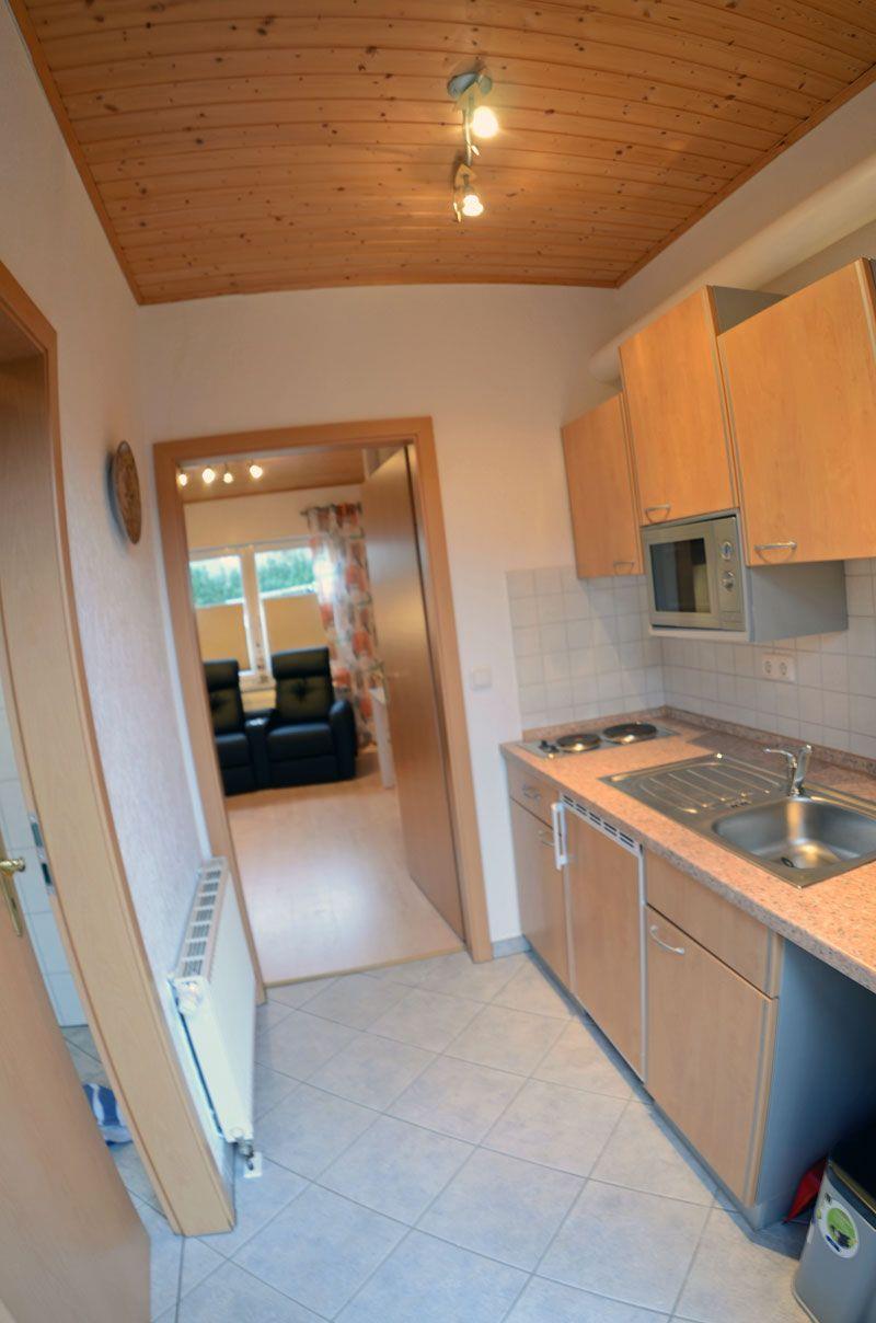 Die Ferienwohnung Kipp 1 hat eine Wohnfläche von 32qm auf 2 Etagen. Im Erdgeschoß gibt es neben einem kleinen Wohn-Esszimmer mit Flachbild-TV eine Küche mit 2-Platten-Herd, Geschirrspüler, Mikrowelle, Kaffeemaschine, Wasserkocher und Toaster.