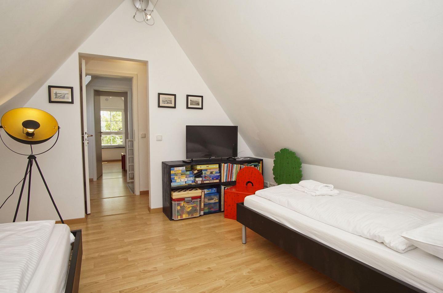 SCHLAFEN // 1. Schlafzimmer mit bequemem Doppelbett im Obergeschoss, 2. & 3. Schlafzimmer mit jeweils zwei Einzelbetten im Dachgeschoss ++