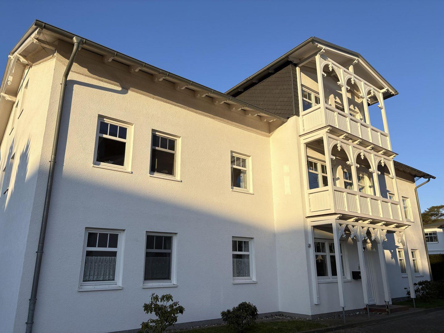 Diese 3-Zimmer-Ferienwohnung im Erdgeschoss mit Balkon befindet sich in der Strandresidenz Juliusruh - Haus II, nur 150 m vom feinsandigen, 12 km langen Badestrand Schaabe entfernt.