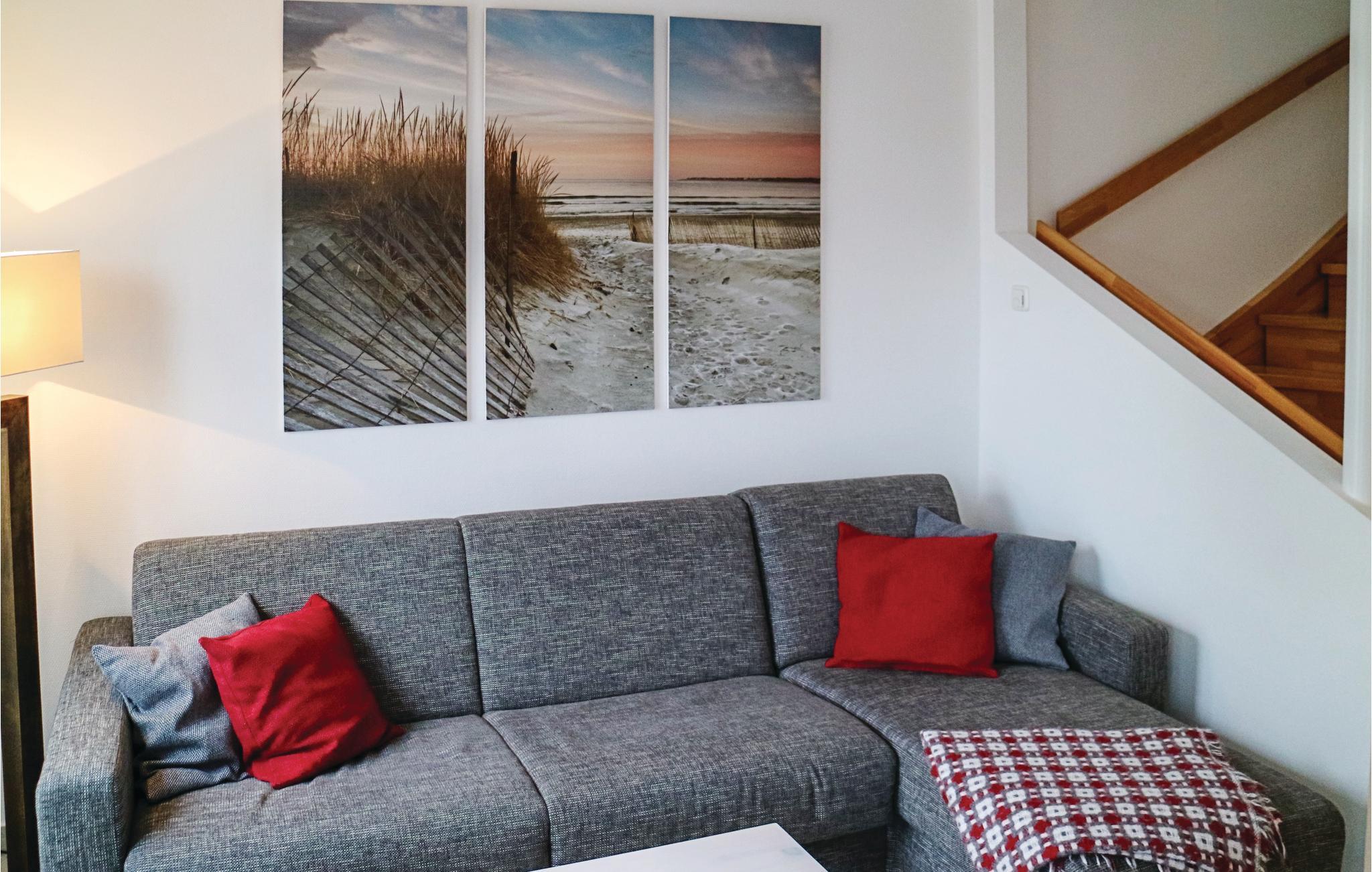 Die modern ausgestattete Doppelhaushälfte mit einer großzügigen Terrasse wurde im skandinavischen Baustil errichtet und ist Teil einer Ferienanlage. Das Haus ist modern und mit maritimen Details eingerichtet.
