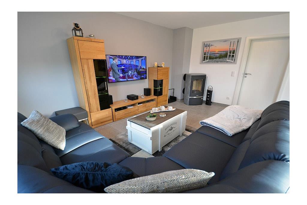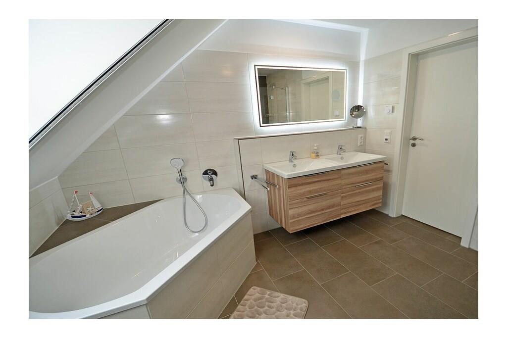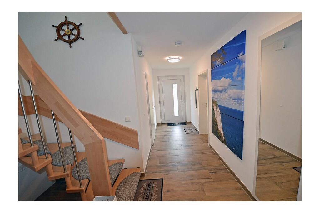 Erdgeschoss: Großzügiger Wohn-/Essbereich mit Kamin, Fußbodenheizung, gemütlichen Sitzgelegenheiten, kostenlosem WLAN, Smart-TV, Blu-ray-Player und Hi-Fi-Anlage. Voll ausgestattete Küche mit Cerankochfeld, Backofen, Mikrowelle, Kühl-Gefrierkombination und Geschirrspüler. Erstes Badezimmer mit ebenerdiger Dusche, Sauna, Waschbecken und WC. Hauswirtschaftsraum mit Waschmaschine, Trockner, Bügelbrett und Kinderhochstuhl. Obergeschoss: Drei Schlafzimmer: eines mit Doppelbett (180 x 200 cm) und Kinderbett, ein weiteres mit Doppelbett und das dritte mit zwei Einzelbetten (90 x 200 cm). Alle Schlafzimmer verfügen über einen Flachbildfernseher. Zweites Badezimmer mit Badewanne, Doppelwaschbecken, Haartrockner, Kosmetikspiegel und bodengleicher Dusche. Außenbereich: Terrasse mit Gartenmöbeln, Liegen, Sonnenschirm, Strandkarren und Grillmöglichkeit. Abschließbarer Fahrradschuppen vorhanden. Das neu erbaute Ferienhaus „Seeadler“ in der Nähe des historischen Kurparks von Breege verfügt über ein komplett eingezäuntes Grundstück (ca. 275 qm) mit ökologischer Fußbodenheizung und Fliegengittern in allen Räumen. Zwei Parkplätze vorhanden. Nur 350 Meter zum 10 km langen Ostseestrand Schaabe, mit einem Netto-Supermarkt in 2 km Entfernung und lokalen gastronomischen Einrichtungen in der Nähe. Vom Hafen aus sind Schiffsausflüge nach Hiddensee und andere Aktivitäten möglich. Haustiere sind gegen Gebühr erlaubt.
