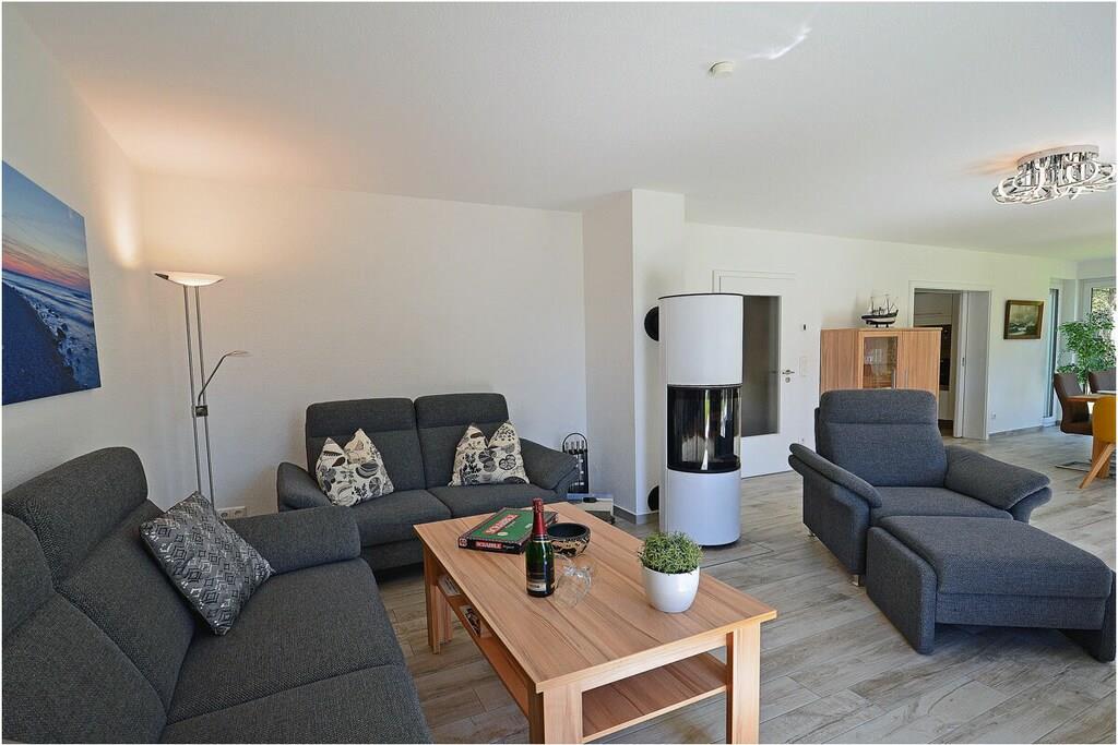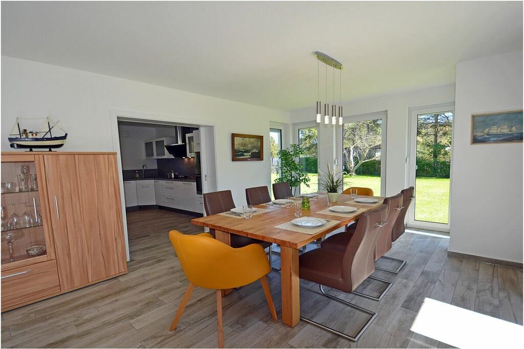 Erdgeschoss: großzügiger Wohnbereich mit Kamin und gemütlicher Couchlandschaft, TV (Flatscreen), Internet (WLAN), Radio/CD und DVD-Player, Bücher und Gesellschaftsspiele für gemütliche Abende, großer Esstisch für 6 Personen, komplett ausgestattete hochwertige Einbauküche mit 4-Plattenherd (Ceranfeld), Backofen, Kühlschrank mit großem Gefrierfach, Geschirrspüler, Waschmaschine, Mikrowelle und diversen Elektrogeräten, Gäste-WC Obergeschoss: 1. Schlafzimmer mit einem Doppelbett (180 x 200) und Kleiderschrank, 2. Schlafzimmer mit zwei Einzelbetten (90 x 200) und Kleiderschrank, 3. Schlafzimmer mit einem Doppelbett (200 x 200) und Sofa, großzügiges modernes Bad mit Dusche und Badewanne/ WC, Kosmetikspiegel Terrasse mit Gartenmöbeln, Sonnenschirm und Grill vorhanden Besonderes: Das Ferienhaus „Schipperhus“ ist ein neues modernes Ferienhaus mit einem Grundstück von ca. 880 qm. Das liebevoll eingerichtete Ferienhaus verfügt über allen Komfort, den Sie sich für einen entspannten Urlaub wünschen können. Kostenfreies Internet (WLAN) ist vorhanden. Es ist ein Nichtraucherhaus. Fußbodenheizung ist im gesamten Haus. Im Erd- und Obergeschoss sind Fliegenschutzgitter vorhanden. Verschließbare Fahrradabstellmöglichkeiten im Geräteschuppen. 2 PKW-Stellplätze befinden sich direkt am Objekt. Ca. 2 km entfernt in Altenkirchen finden Sie einen Netto, das Kaufhaus „Stolz“, Edeka und einen Getränkemarkt. Restaurants und Radverleih sind in der Nähe. Der ca. 500 m entfernte Breeger Hafen bietet Ausflugsmöglichkeiten per Schiff zur Insel Hiddensee, Boddenfahrten, Kranichfahrten und zu den Störtebeker-Festspielen. Optimale Rad- und Wandermöglichkeiten runden das Angebot ab. Haustiere mit Rücksicht auf Allergiker leider nicht gestattet!