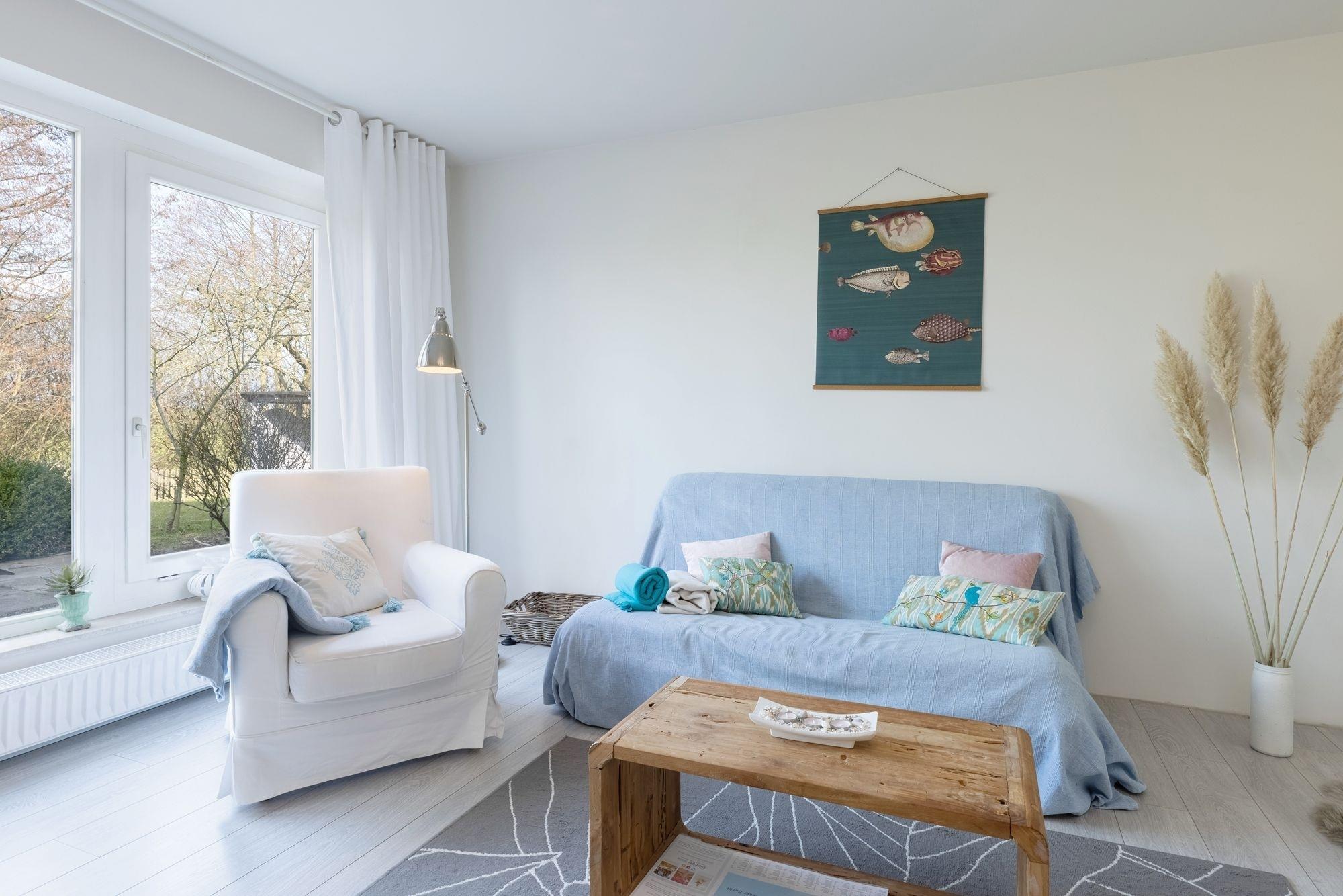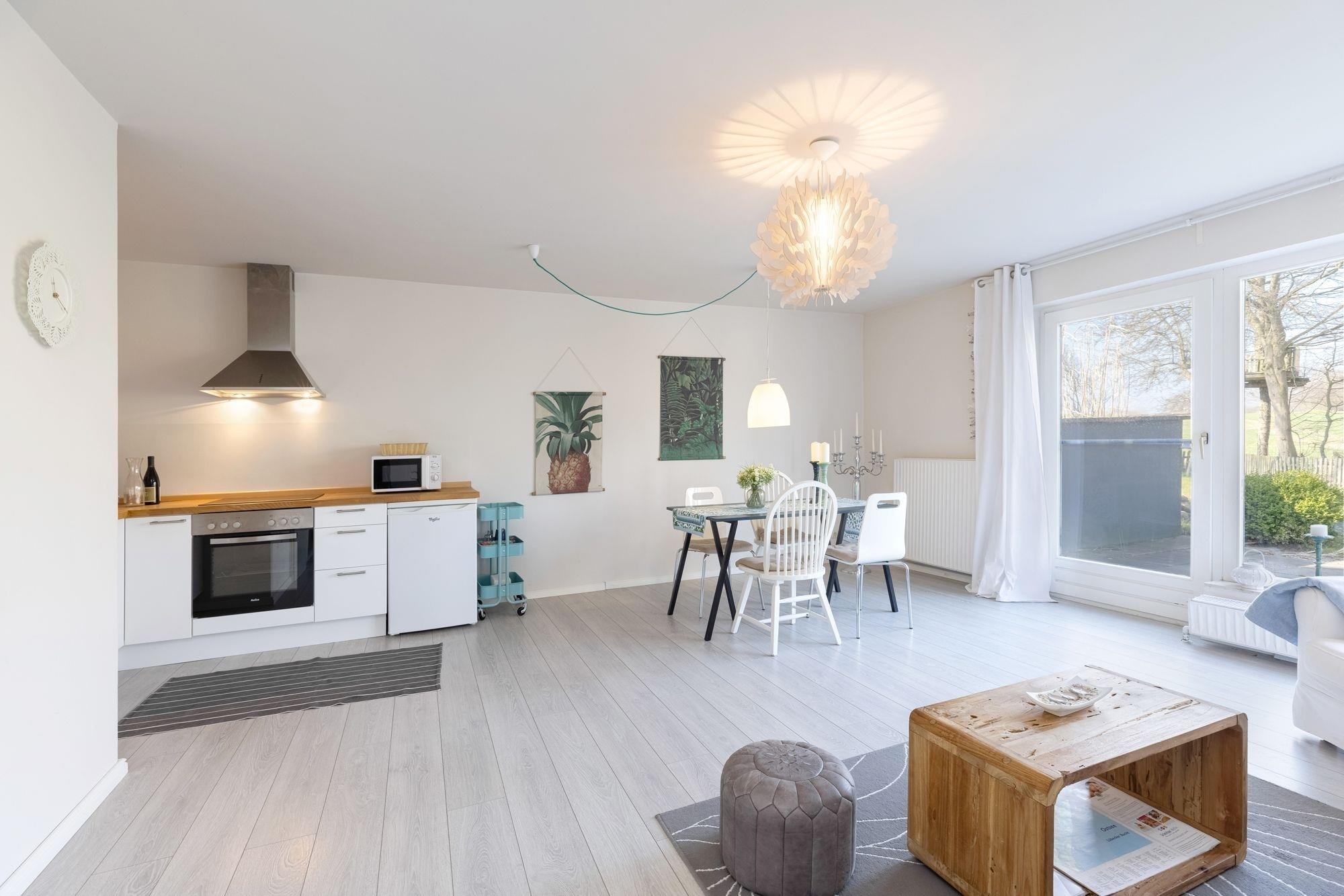 Die 2-Zimmer-Ferienwohnung im Erdgeschoss mit ca. 51 m² Wohnfläche und großzügigem Außenbereich bietet Platz für max. 2 Erwachsene und 2 Kinder. Genießen Sie Natur pur in Strandnähe - Eine herrliche Kombination!