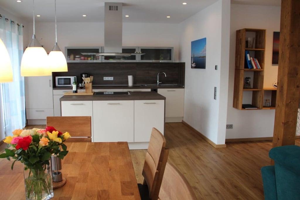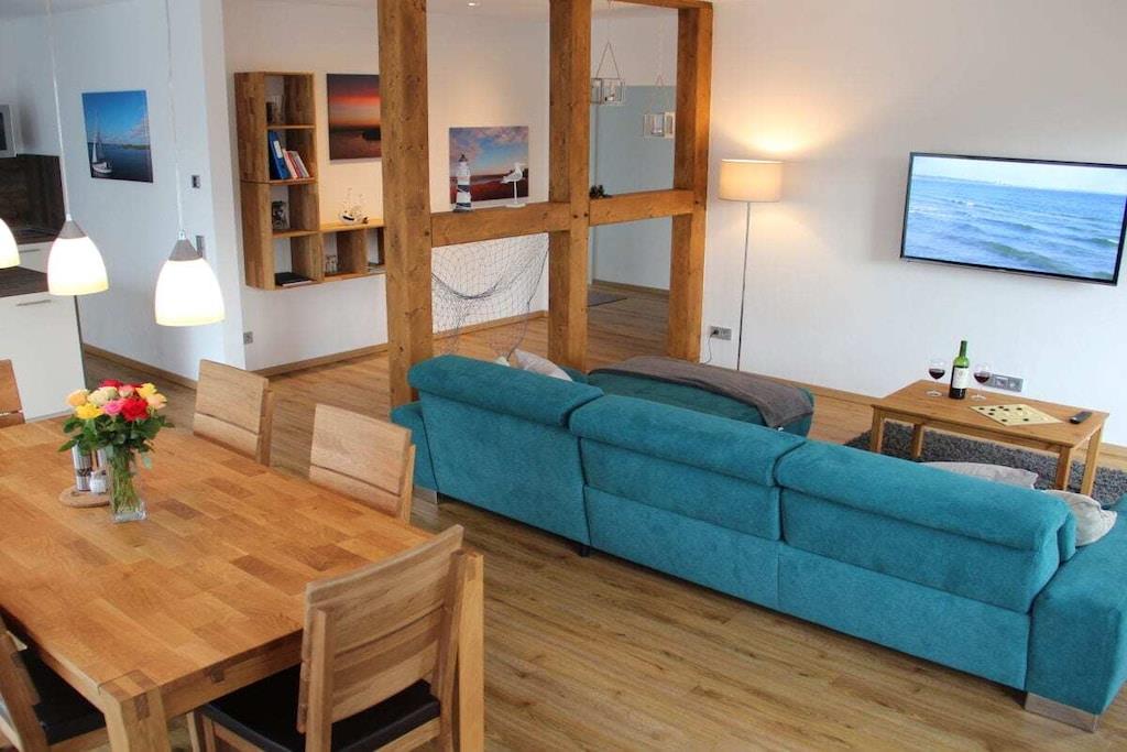 Unser 2016 neu erbautes Ferienhaus mit 100 m² Wohnfläche, für max. 5 Personen befindet sich im kleinen idyllischen Dörfchen Bresewitz. Bresewitz liegt direkt am Bodden und ist ca. 4 km vom beliebten Ferienort Zingst und vom Strand entfernt. Das Ferienhaus ist modern ausgestattet, mit 2 Schlafzimmern im Erdgeschoss geräumiger Wohnküche und Bad mit Sauna, Gäste WC, Abstellraum mit Waschmaschine. Auf dem Grundstück befindet sich ein abschließbares Nebengebäude zum unterstellen von Fahrrädern sowie einen Lademöglichkeit für E-Bikes. Ein Restaurant und ein Eiscafe gibt es direkt im Ort. Die nächste Einkaufsmöglichkeit in Zingst ist gut erreichbar.
