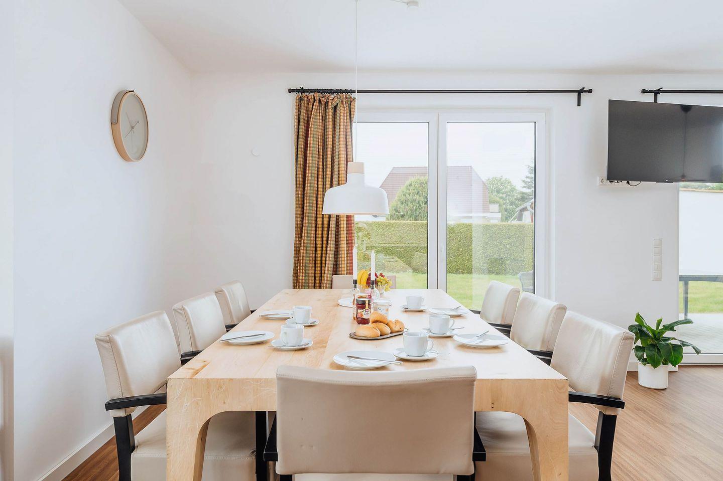 Eine modern eingerichtete und gut ausgestattete Doppelhaushälfte, Baujahr 2023, liegt direkt am Nationalpark Vorpommersche Boddenlandschaft. Das Herz des Hauses ist ein sehr großzügiger Wohnraum mit Essbereich und Leseecke, mit Sat-TV und einer komplett ausgestatteten Einbauküche.