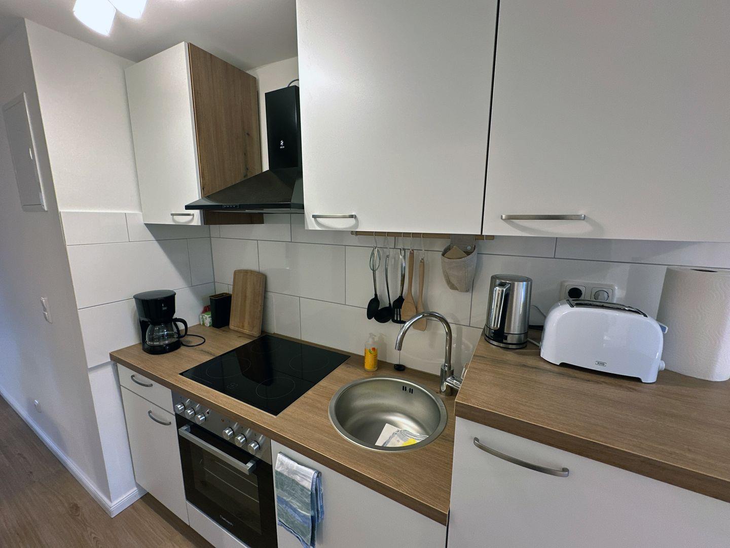 Zu den Annehmlichkeiten der Nichtraucherwohnung gehören ein Backofen, eine Essecke, getrennte Betten und Matratzen, ein Kaffee- und Teekocher, eine Kaffeemaschine, eine Kochnische, ein Kühlschrank, eine Sitzgelegenheit, ein Toaster, ein Fernseher, WLAN im Zimmer sowie eine Wohnküche.