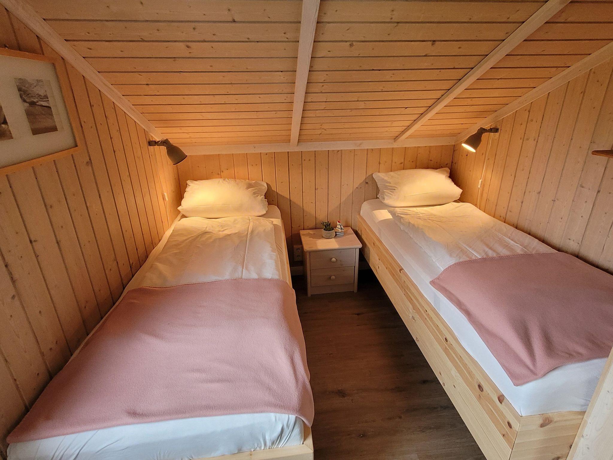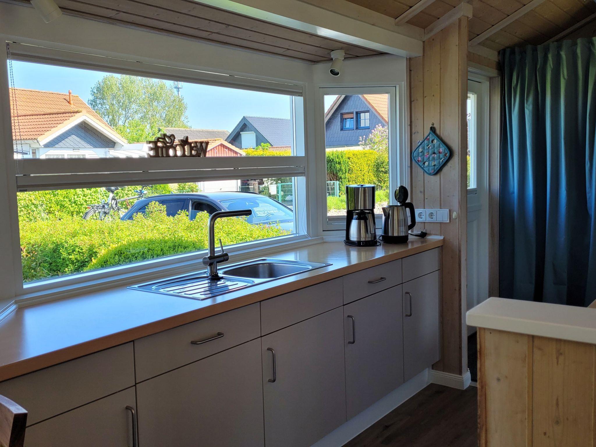 Innen überzeugt das Ferienhaus mit zwei urgemütlichen kleinen Schlafzimmern, ausgestattet mit einem Doppelbett bzw. zwei Einzelbetten und Fliegengitter an allen Fenstern, um Ihre Nachtruhe zu schützen. Das große, lichtdurchflutete Wohn-/Esszimmer samt Einbauküche, ausgestattet mit allen notwendigen Geräten wie Geschirrspüler, Mikrowelle und Waschmaschine sowie einem Smart-TV mit SAT-Fernsehen inklusive Streamingdiensten wie Netflix oder Prime, lädt zum Verweilen und Genießen ein.