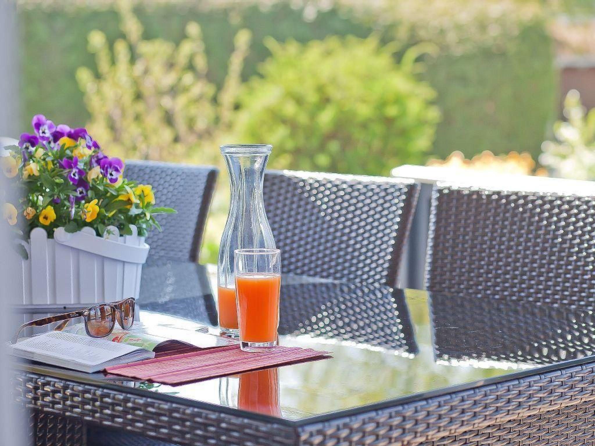 Der Außenbereich wartet mit einem einladenden Garten inklusive möblierter Terrasse und Grillmöglichkeit auf Sie. Das Grundstück ist sicher umzäunt mit Hecken und Zaunelementen, perfekt für Haustierbesitzer. Ein zusätzliches Gartenhaus bietet Stauraum für mitgebrachte oder gemietete Fahrräder und einen beweglichen Hundezaun für den flexiblen Einsatz im Garten.