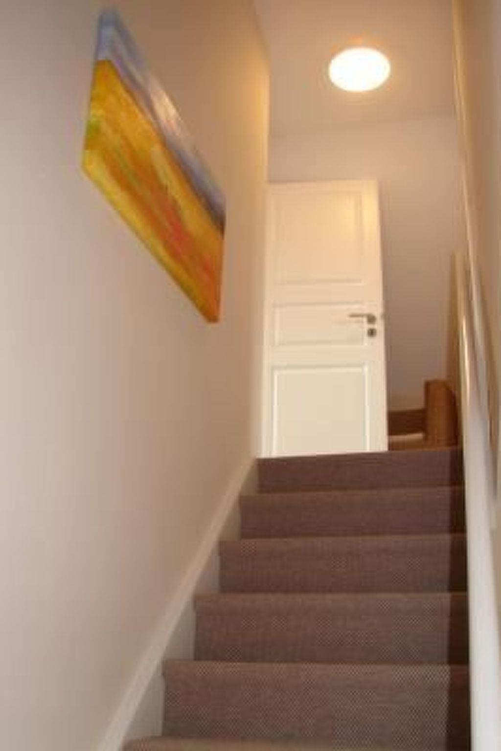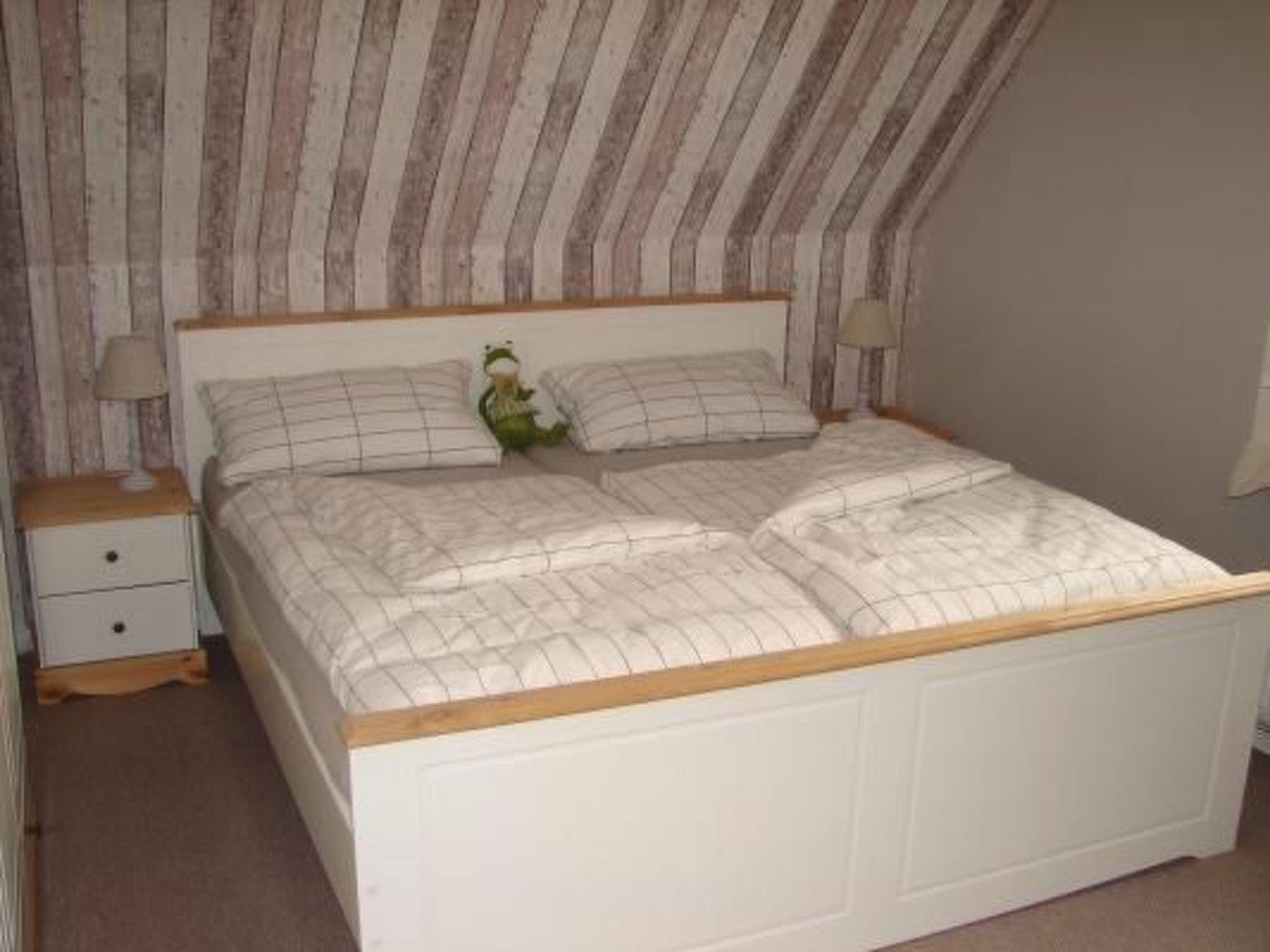 Das alleinstehende Haus mit Balkon und umfriedeten Grundstück verfügt über ca. 80 m² Wohnfläche, die sich auf zwei Etagen verteilt. Es wurde im Jahr 2014 komplett entkernt und hochwertig neu aufgebaut. Während Ihnen im Erdgeschoss das Wohn- und Esszimmer, die vollausgestattete Küche und das Vollbad zur Verfügung steht, gelangen Sie über das kinder- und hundefreundliche Treppenhaus mit Setzstufen zu den beiden Schlafzimmern im Dachgeschoss. Die Schlafzimmer bieten mit ca. 17 m² und 13 m² ausreichend Platz für bis zu vier Personen. Im ersten Schlafzimmer finden Sie Schlaf in einem komfortablen Doppelbett (200 x 190 cm) mit zwei Einzelmatratzen, das von zwei Nachttischen mit Leselampen umgeben ist, und unter der Dachschräge liegt. Im zweiten Schlafzimmer befinden sich zwei Einzelbetten einer jeweiligen Größe von 90 x 200 cm. In beiden Schlafzimmern wird Ihnen zur Verstauung Ihres Gepäcks ein großzügiger Kleiderschrank mit drei Türen geboten und eine Kommode geboten. Außerdem lässt sich aus dem größeren Schlafzimmer der Balkon betreten. Im Erdgeschoss finden Sie das Wohnzimmer als Herzstück des Hauses. Auf einer schwarzen Lederrundecke nehmen Sie gemütlich Platz nach einem Tagesausflug. Genießen Sie die Entspannung und lassen sich dabei von einem LED-Flachbildfernseher mit Sat.-TV Anschluss unterhalten. Eine Bose Wave Stereoanlage untermalt Ihren Aufenthalt mit Ihrer mitgebrachten Musik. Das Wohnzimmer ist einladend mit Holzmöbeln im Landhausstil eingerichtet. Mit dem massiven Esstisch, der bis zu sechs Personen Platz bietet, wird es auch als Esszimmer genutzt. Über einen Durchgang gelangen Sie in die voll ausgestattete moderne Einbauküche, in der Sie zu Ihrer umfangreichen und komfortablen Selbstversorgung neben einem Geschirrspüler auch einen Herd mit Ceranfeld, einen Backofen, einen Kühlschrank mit Gefrierfach und unter anderem einen Waschtrockner finden. Außerdem befindet sich das Vollbad in dieser Etage. Dieses ist als Tageslichtbad mit zwei Milchglasfenstern, einer Dusche mit flacher Duschwanne und gläsernen Kabinentüren, einer Badewanne mit Whirlpoolfunktion, einem unterbautem Waschbecken mit Spiegelschrank und WC ausgestattet. Alle Räume werden über eine Öl-Zentralheizung beheizt. Internetnutzung erfolgt über Glasfaseranschluss.