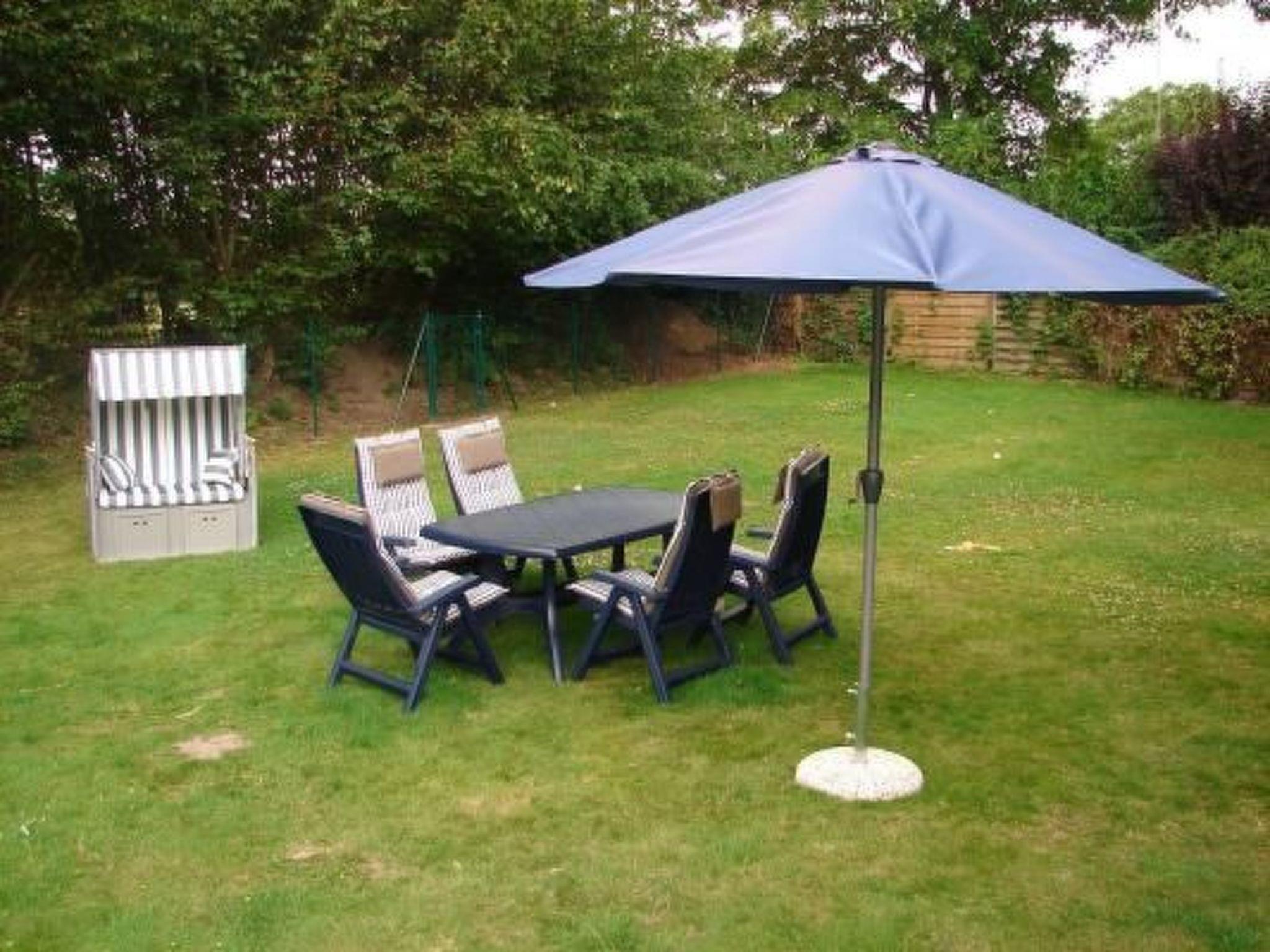 Auf dem Balkon finden Sie einen kleinen Tisch und zwei Stühle, wo Sie den Abend mit einem Glas Wein ausklingen lassen oder morgens mit einer Tasse Kaffee einen neuen Tag beginnen können. Aus der Küche können Sie über eine Terrassentür den ca. 750 m² großen Garten betreten. Dieser ist komplett eingezäunt, so dass Sie Kinder oder Hunde sorglos draußen spielen lassen können. Im Garten sorgen eine Gartengarnitur mit Kugelgrill und natürlich ein Strandkorb für Abwechslung an sonnigen Tagen. Zur Anreise und während Ihres Aufenthalts werden Ihnen zwei PKW-Stellplätze geboten.