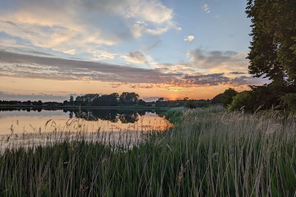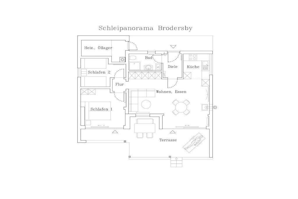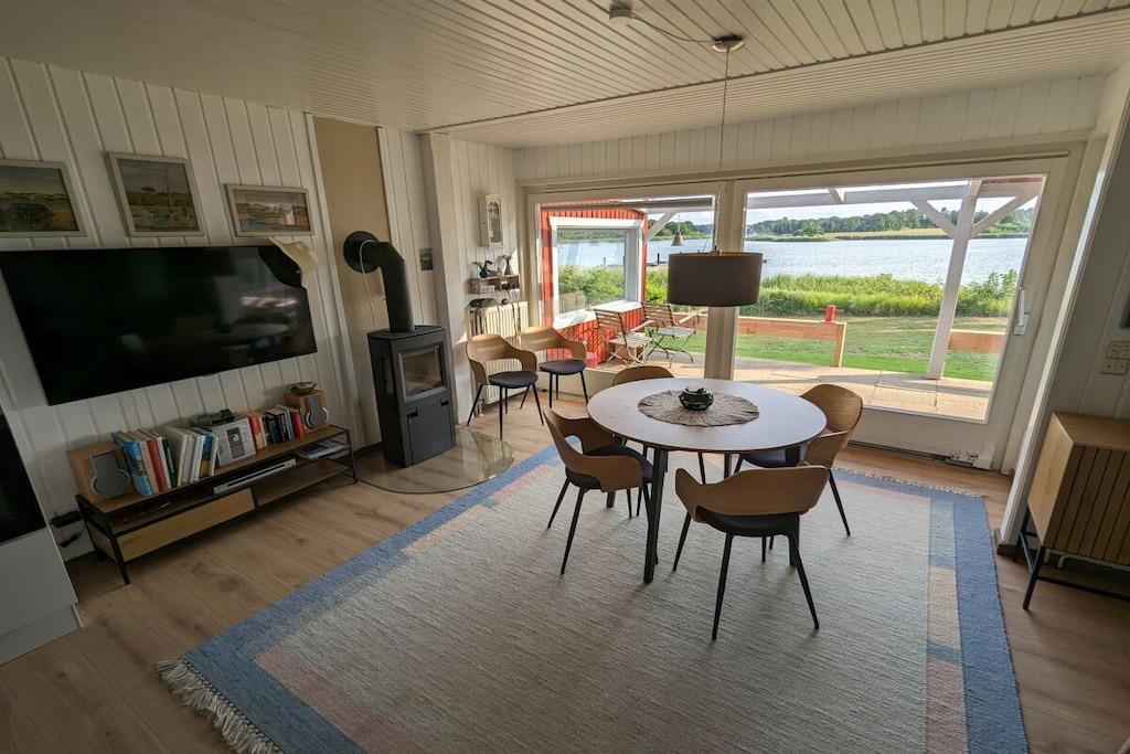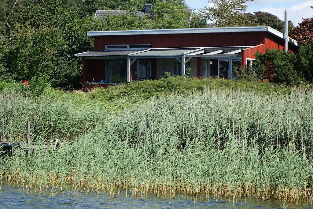 Unser Ferienhaus liegt direkt am Ufer des Brodersbyer Noors. Es bietet einen traumhaften Panoramablick auf die Schlei zur Fähre Missunde. Das Haus wurde 2023 komplett neu renoviert und möbliert. Ihnen stehen 2 Schlafzimmer zur Verfügung, eines davon mit dem beschriebenen traumhaften Ausblick. Da wir das Haus auch selbst häufig nutzen, ist es mit "Pütt und Pann" komplett gemütlich und komfortabel eingerichtet. Es liegt direkt am nördlichen Schleiufer und bietet einen AAA-Wasserblick, überdachte Terrasse, eigener Steg, & Badestelle, Kajak, 2 SUP's, Ruderboot, kleines Motorboot mit AB, 2 Fahrräder usw. Das ist alles im Preis enthalten. Wenn Sie mit Ihrem eigenen Boot anreisen, können Sie dies an unserem oder am direkt benachbarten "großen" Steg festmachen.