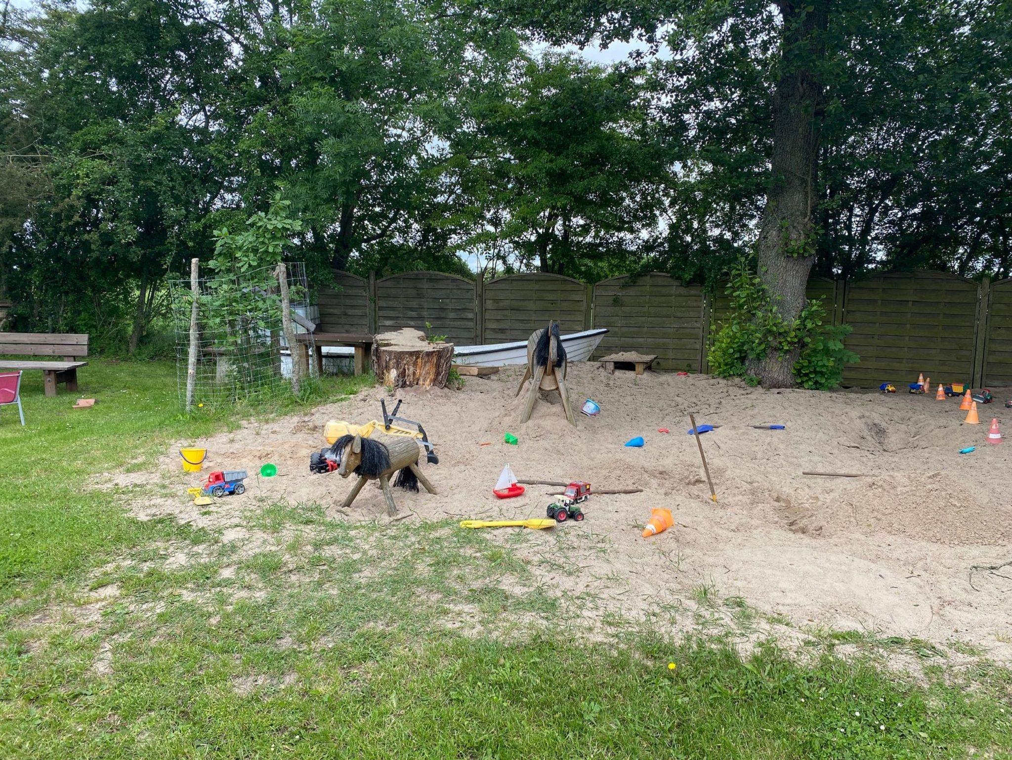 Der Innenhof verfügt über einen großzügig angelegten Spiel- und Freizeitbereich mit viel Sand. Zahlreiche Kleintiere und zwei Ponys zum Streicheln und Liebhaben warten in ihren natürlichen Gehegen auf unsere kleinen Gäste.