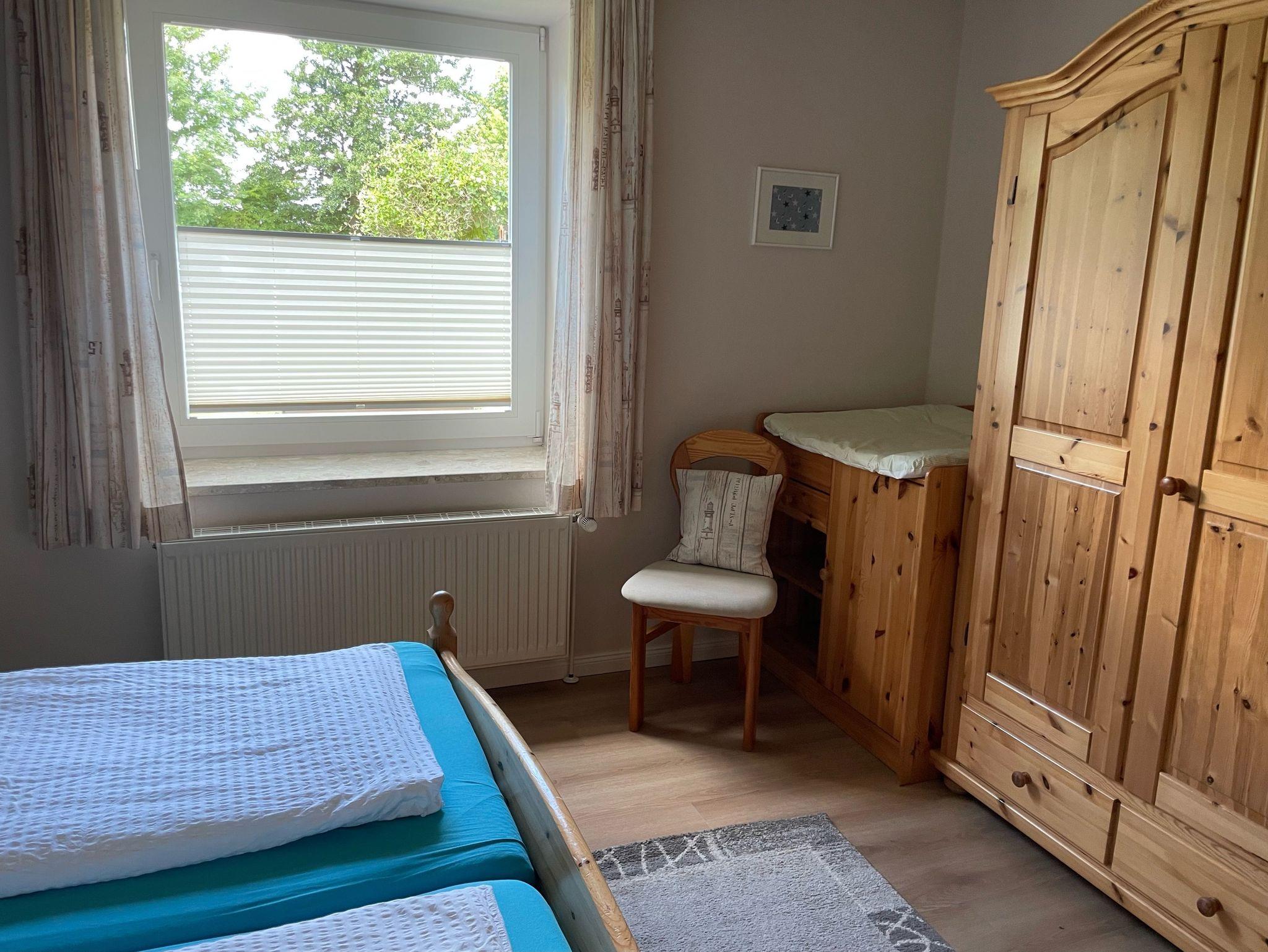 Das Kinderzimmer ist geräumig und mit zwei großen Einzelbetten und separatem Kleiderschrank ausgestattet und bietet ausreichend Platz zum Spielen.