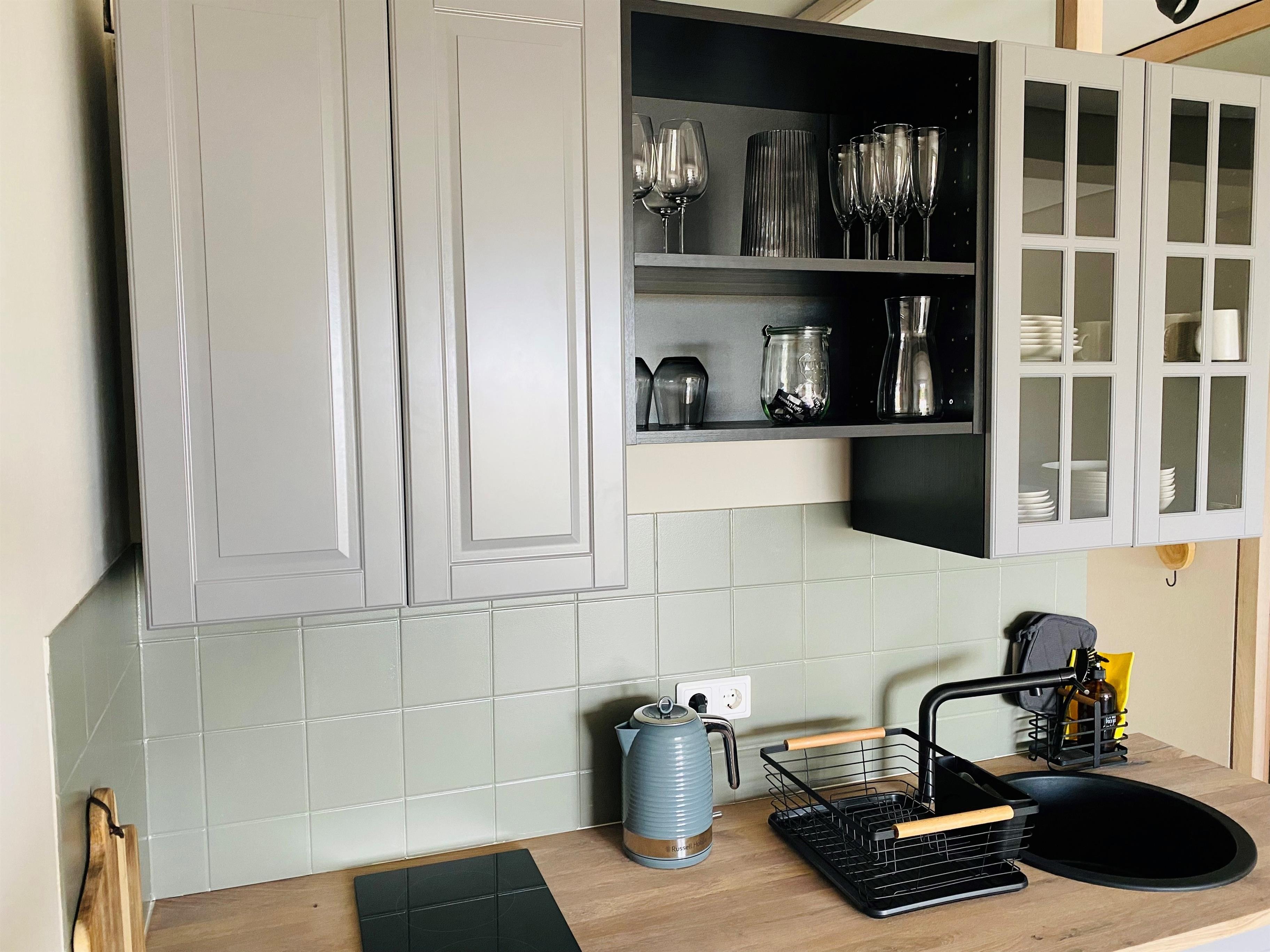 Für die gemeinsamen Mahlzeiten verfügt der Wohnbereich ebenso über eine Essecke. Die zum Wohnraum offene Küche, wurde neu geplant und nach der Renovierung im Mai 2022 eingebaut. Diese verfügt unter anderem über ein Cerankochfeld, einen Backofen, eine Filterkaffeemaschine, einen Wasserkocher & einen Toaster. Allen weiteren nötigen Küchenutensilien, die das Gourmetherz begehren, sind hier ebenfalls vorhanden.