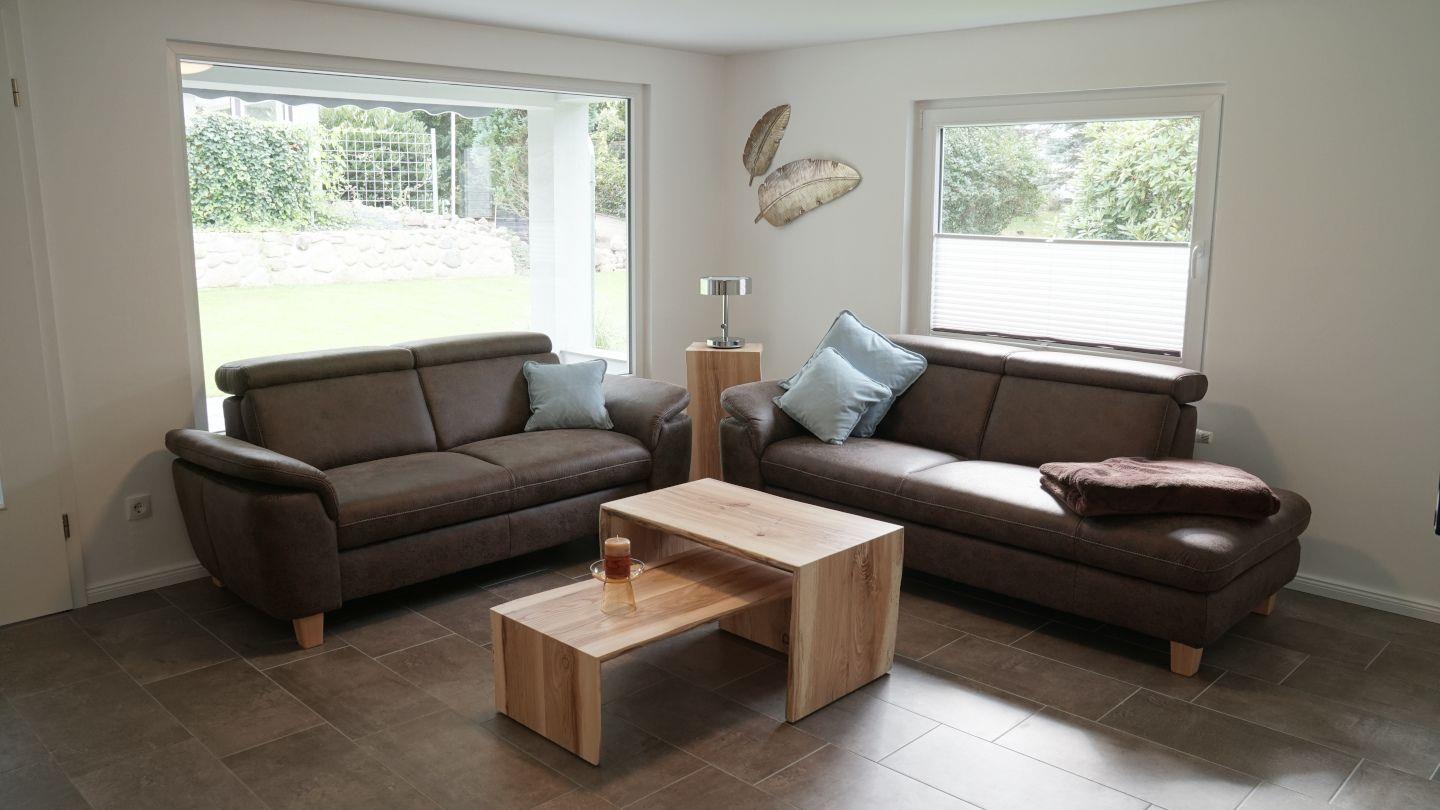 Modernes Ferienhaus 'Die Fünf' in Brodersby-Burg mit Sauna, Terrasse und hochwertiger Ausstattung für entspannte Urlaubstage.