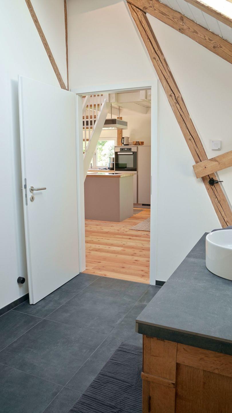 Die Ferienwohnung "Scheunenloft" ist eine neue, moderne Ferienwohnung in einer historischen über hundert Jahre alten Scheune des Schwanenhofes.