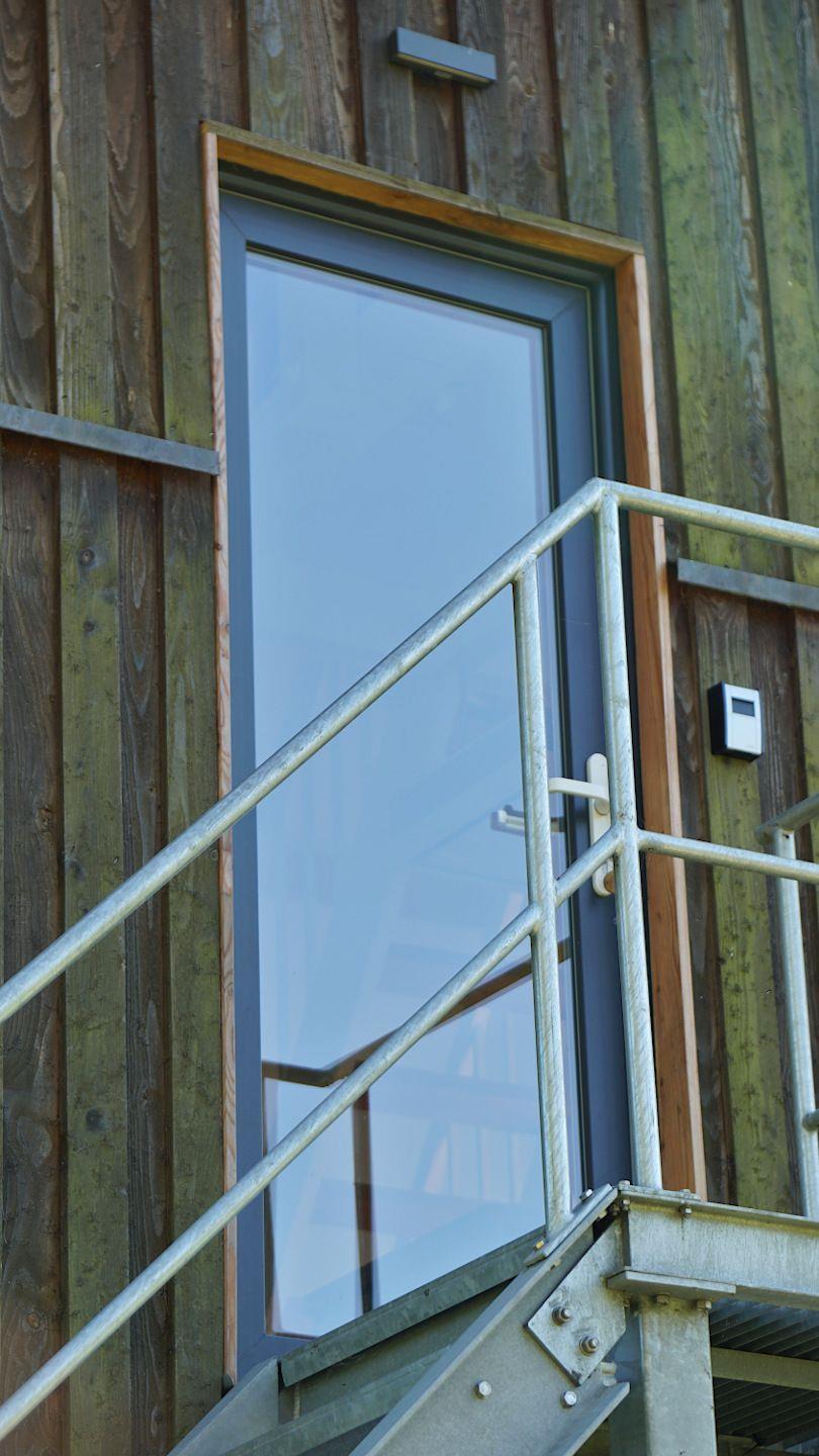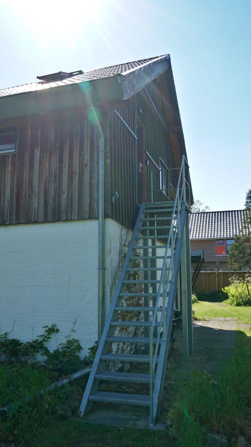 Sie befindet sich im Dachgeschoss des Hauses, der Zugang erfolgt über eine Metalltreppe an der rechten Seite der Scheune