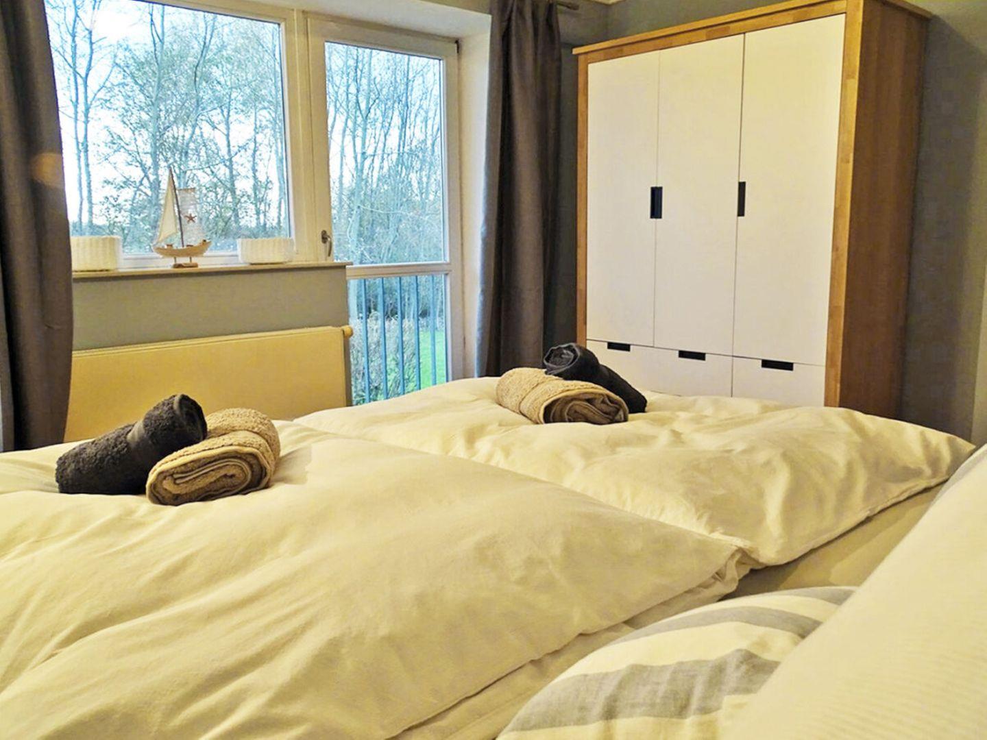Das gemütlich eingerichtete Schlafzimmer gewährt einen herrlichen Blick in die Gartenanlage, die sich hinter dem Haus befindet. Bei Bedarf kann die Schlafcouch im 2. Schlafzimmer von einem mitreisenden Kind genutzt werden.