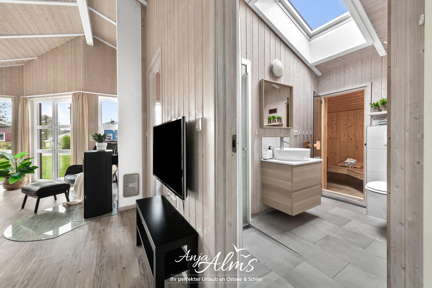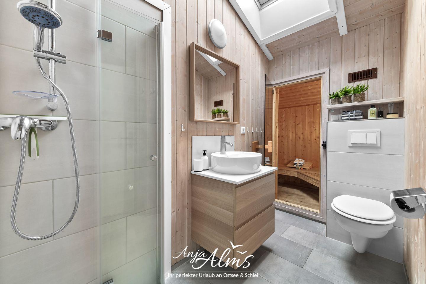 Eine, im frisch renovierten Badezimmer, integrierte Sauna rundet Ihre Auszeit am Meer perfekt ab.