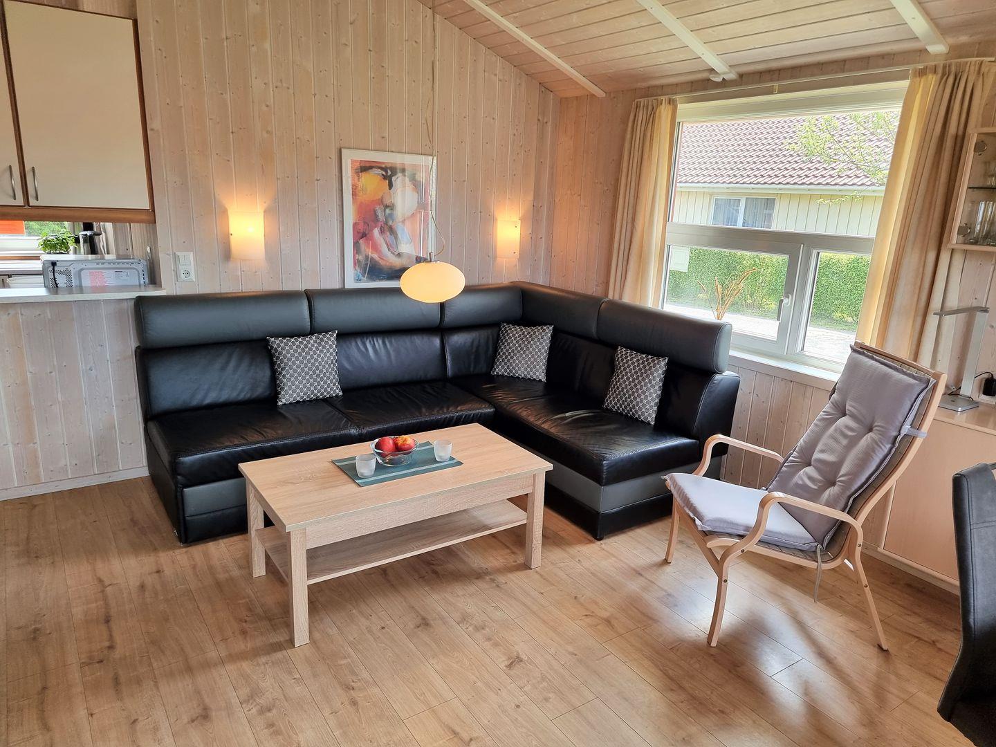 Das Haus bietet auf seinen 64m² Platz für bis zu 4 Personen + Baby. Ausgestattet mit einem großen Wohn-und Essbereich, zwei Schlafzimmern, einer voll ausgestatteten Küche und einem Duschbad mit Sauna lädt es zu einem erholsamen Urlaub ein.