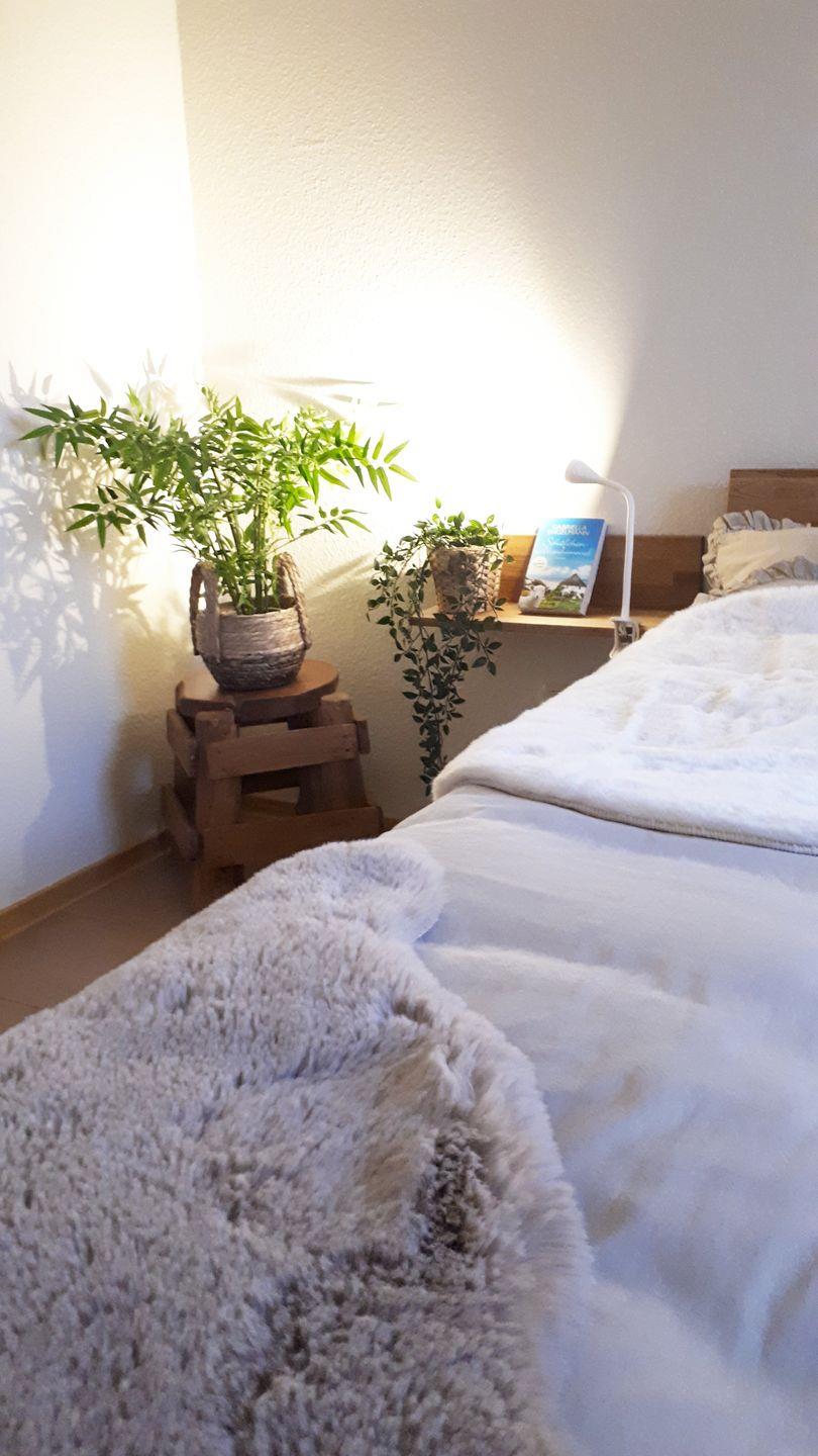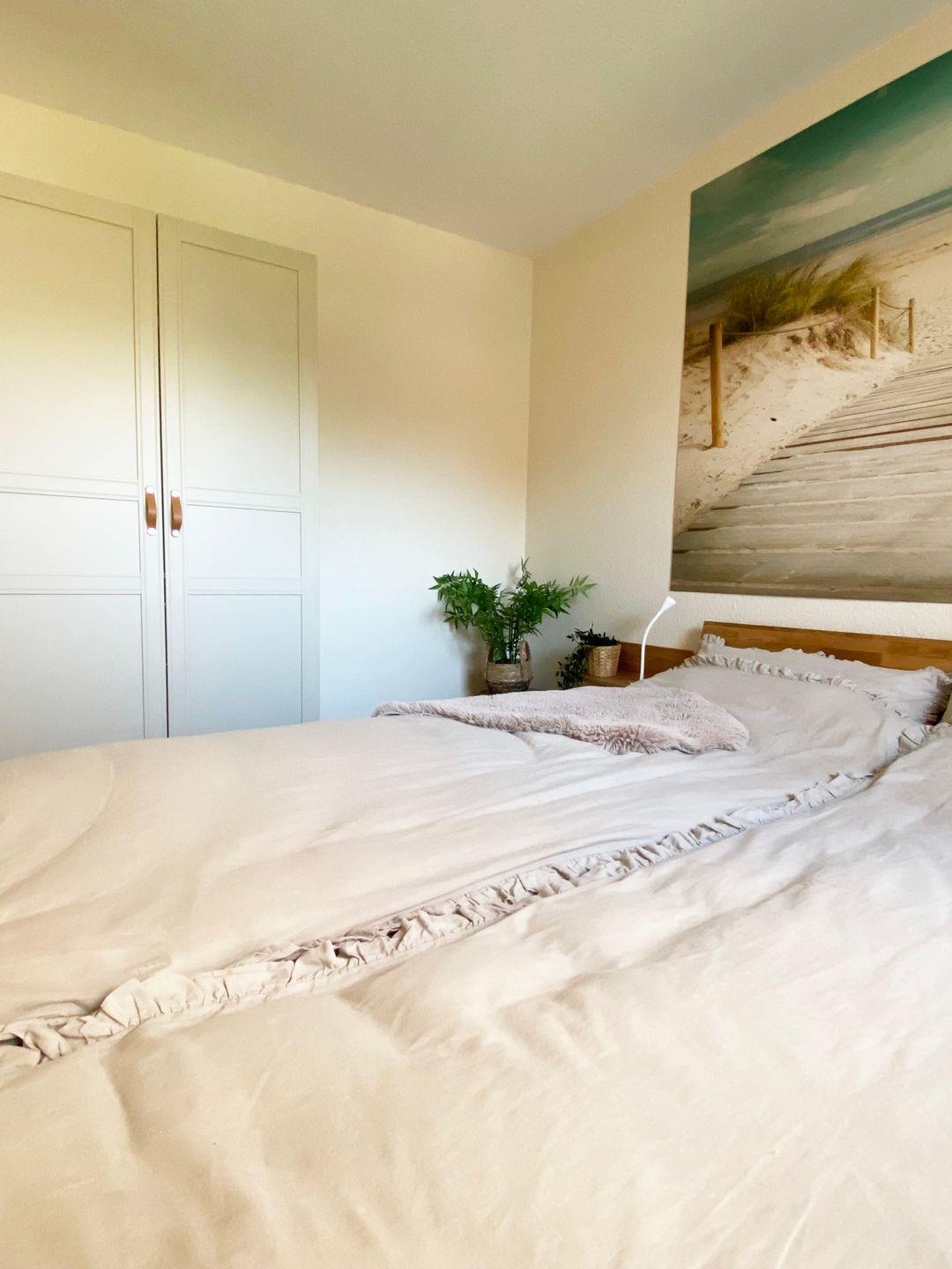 Die Wohnung verfügt über eine gemütliche offene Pantryküche mit Cerankochfeld, Backofen, Kühlschrank, Gefrierfach, Spülmaschine, Filterkaffeemaschine, Wasserkocher, Toaster und Handrührgerät. Im Schlafzimmer erwartet Sie ein komfortables Doppelbett (160x200cm) mit getrennten Matratzen und einem Kleiderschrank. Für eine angenehme Nachtruhe sorgt die Verdunklungsmöglichkeit.