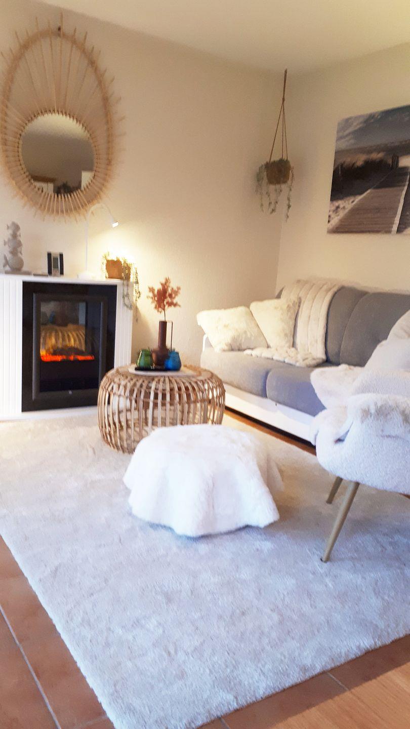 Zusätzlich gehört ein E-Kamin zur Ausstattung und sorgt für ein gemütliches Ambiente. Im Außenbereich erwartet Sie eine teilüberdachte Terrasse mit einer Sonnenliege und Gartenmöbeln (Tisch und 2 Stühle). Ein Windschutz und eine Markise bieten Schutz vor Wind und Sonne.