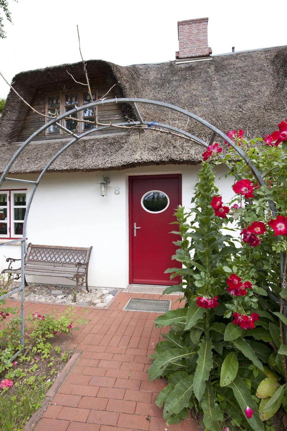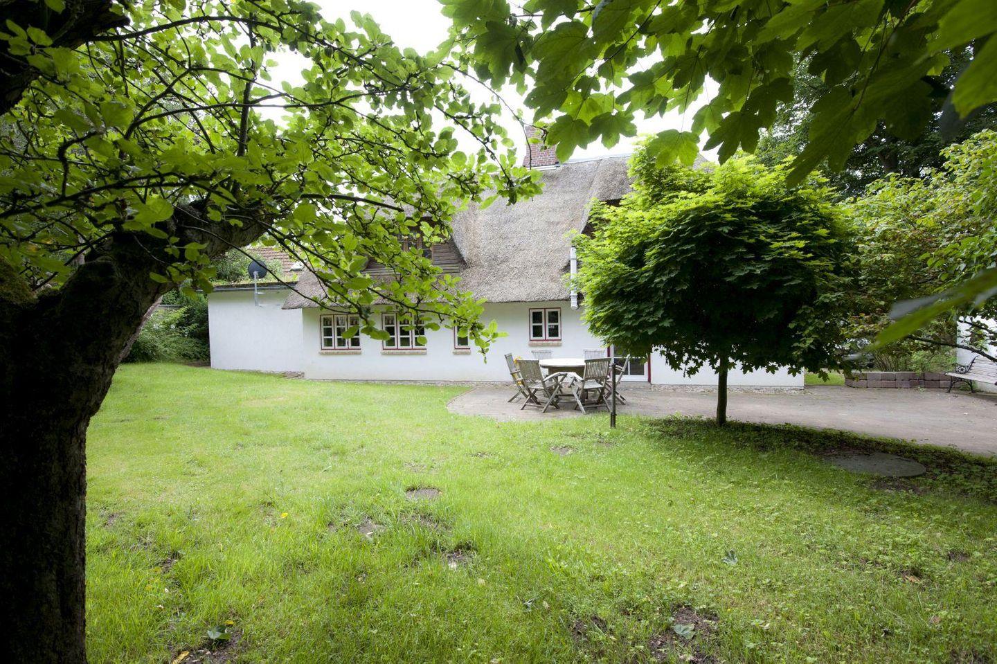 Das reetgedeckte Kapitänshaus in Brodersby-Burg liegt 100 Meter vom Strand entfernt und bietet einen idyllischen Garten mit Terrasse.