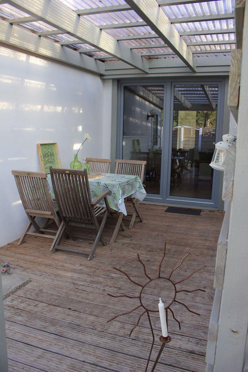 Nur 150 Meter vom Stand entfernt, erst 2016 gebaut, mit überdachter Terrasse. Geeignet für bis zu 4 Personen und 2 Hunde.