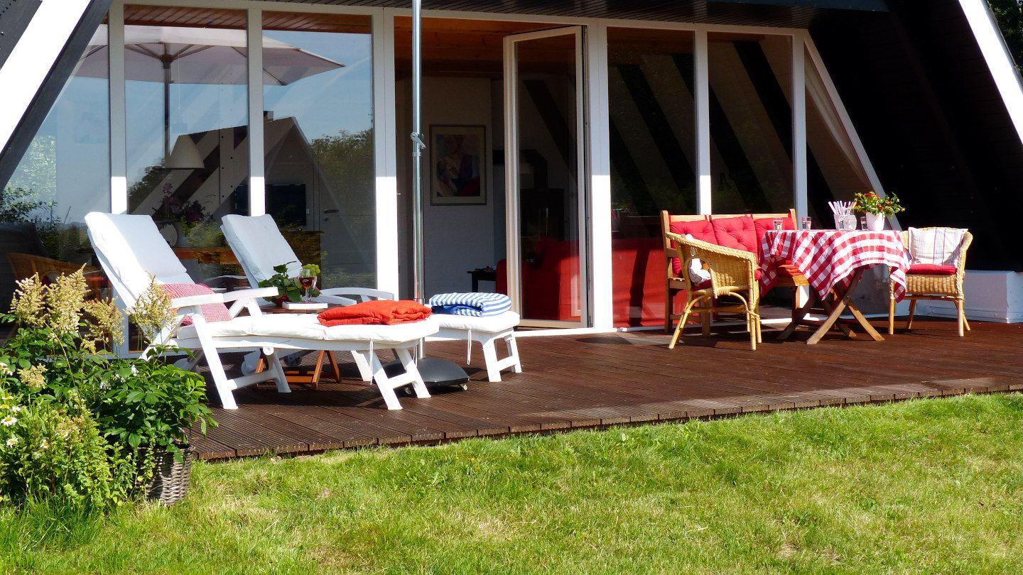 Gemütliches Ferienhaus "Schleistern" mit Glasfassade und Schleiblick, Terrasse, Garten und Platz für 5 Personen in Brodersby.