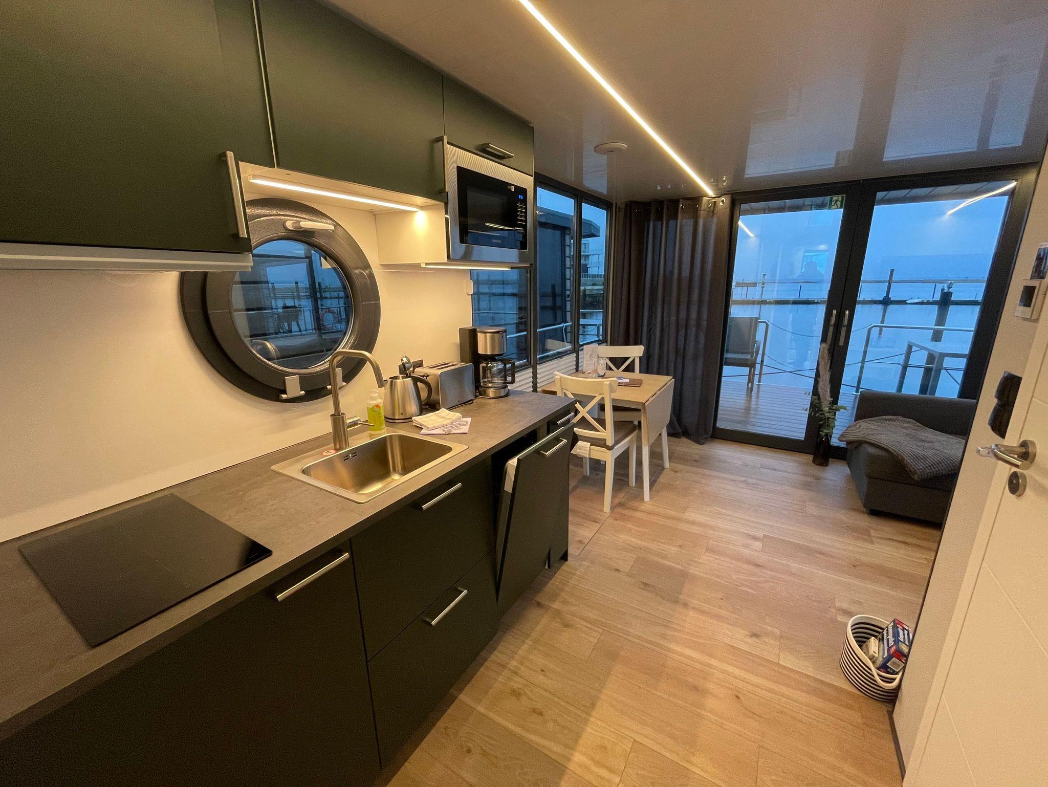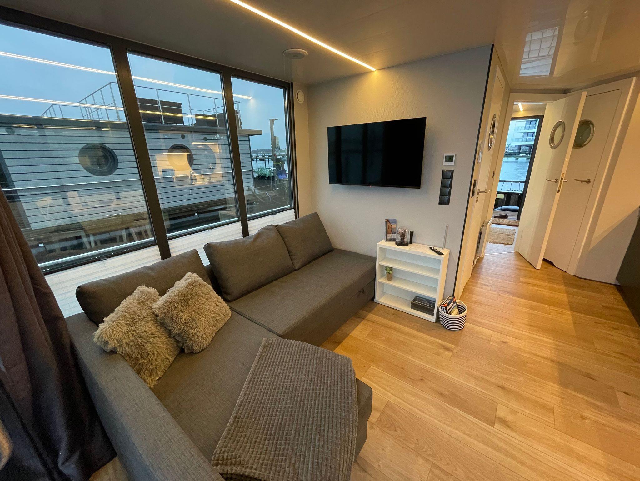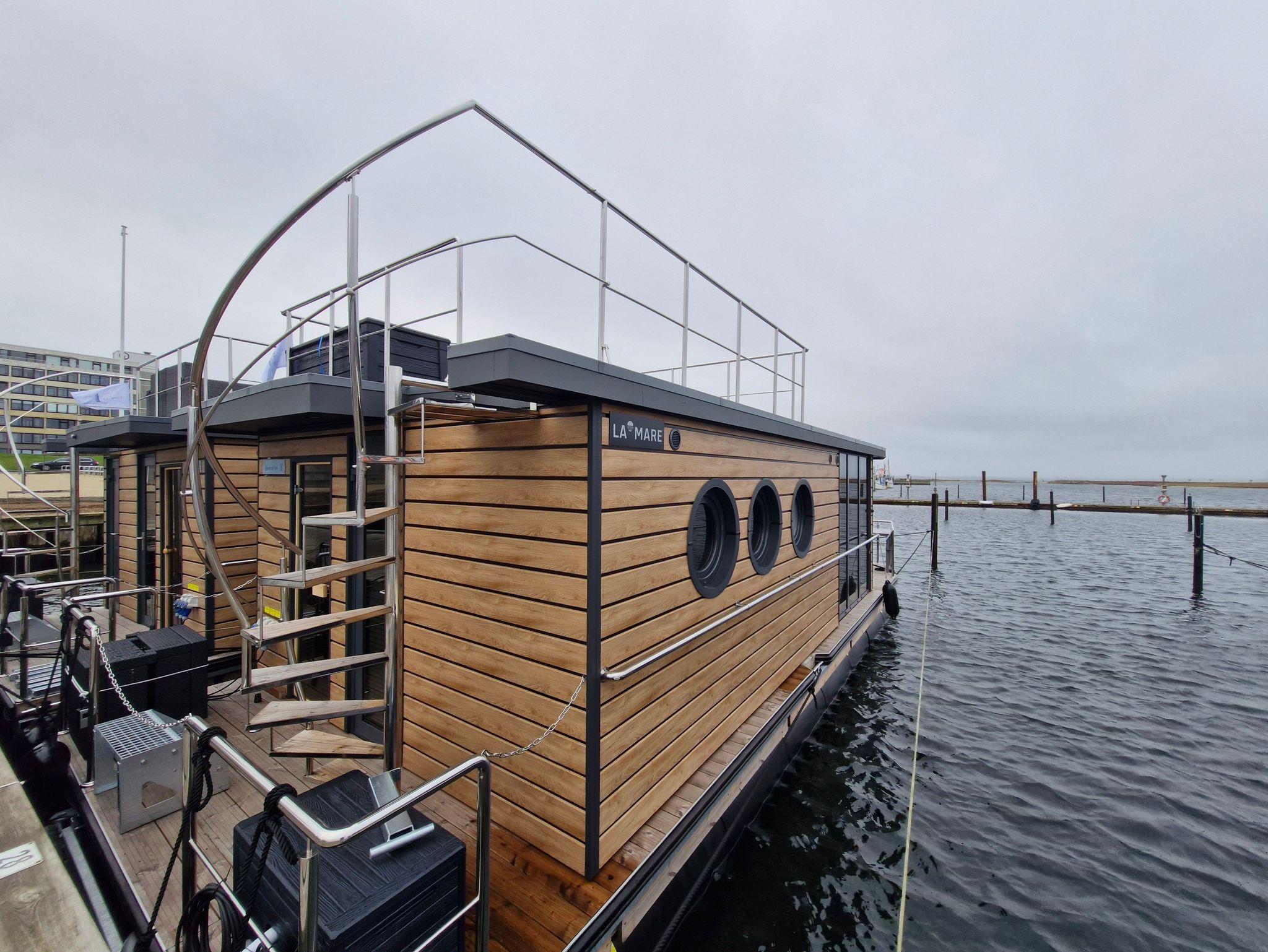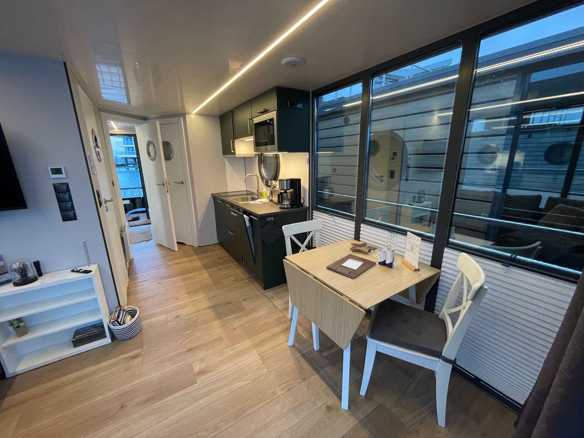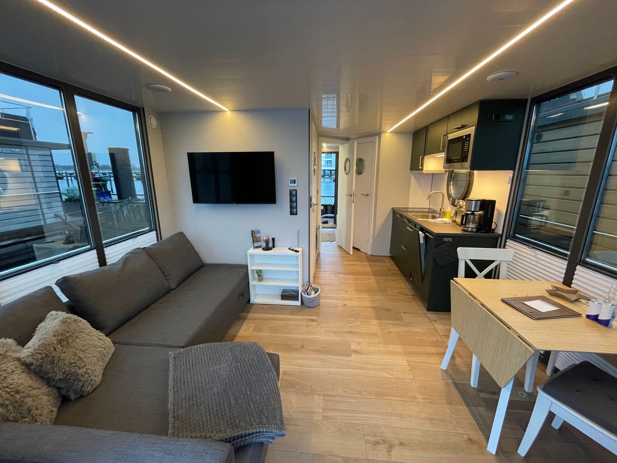 Nachhaltiges Solarhausboot mit Meerblick