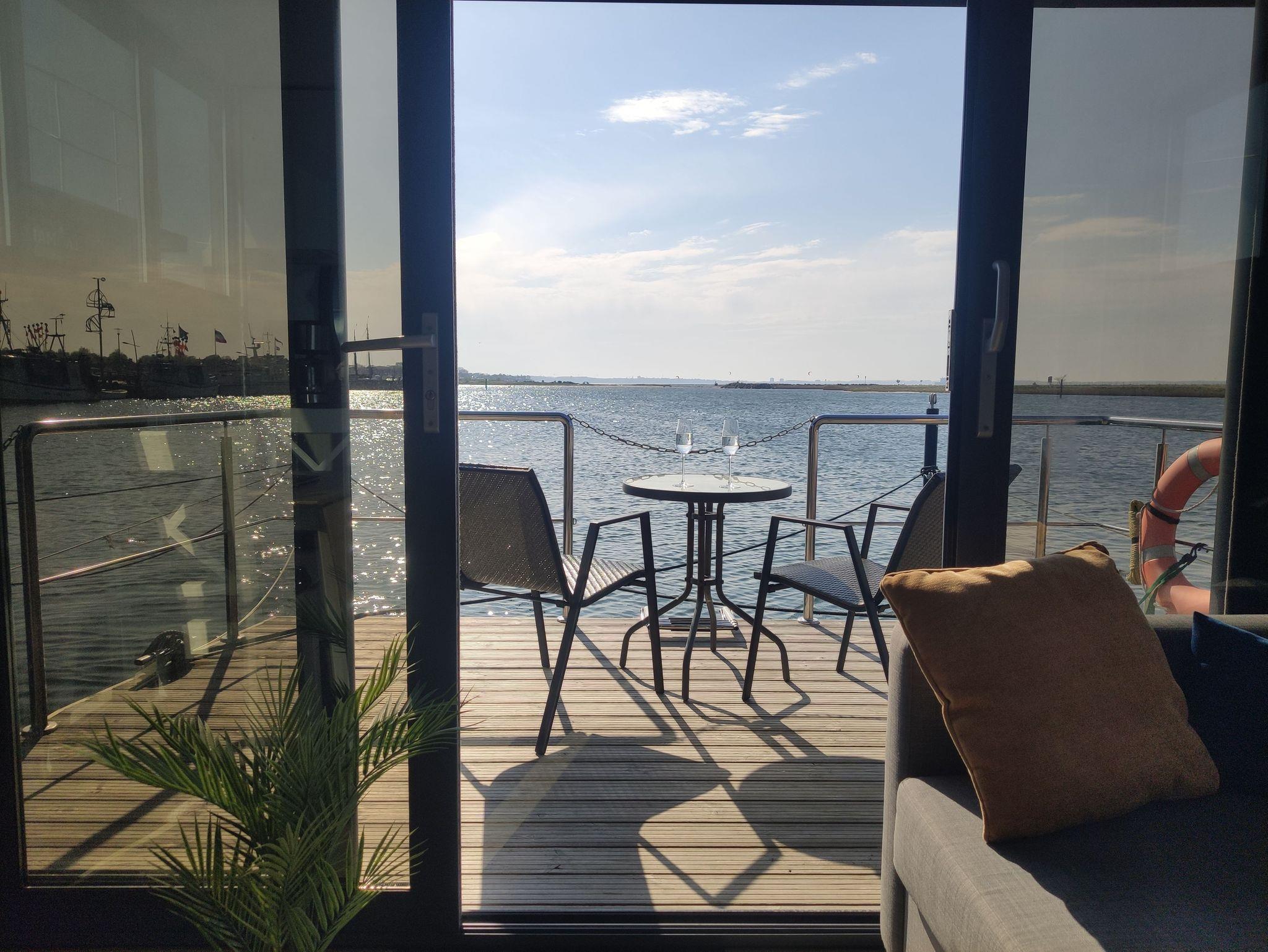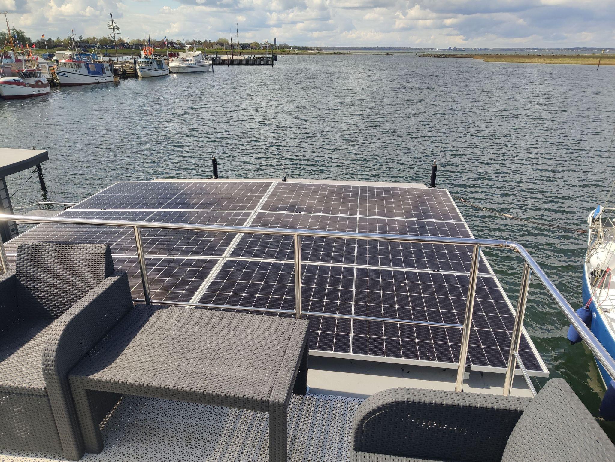 Nachhaltiges Solarhausboot mit Meerblick und Komfort
