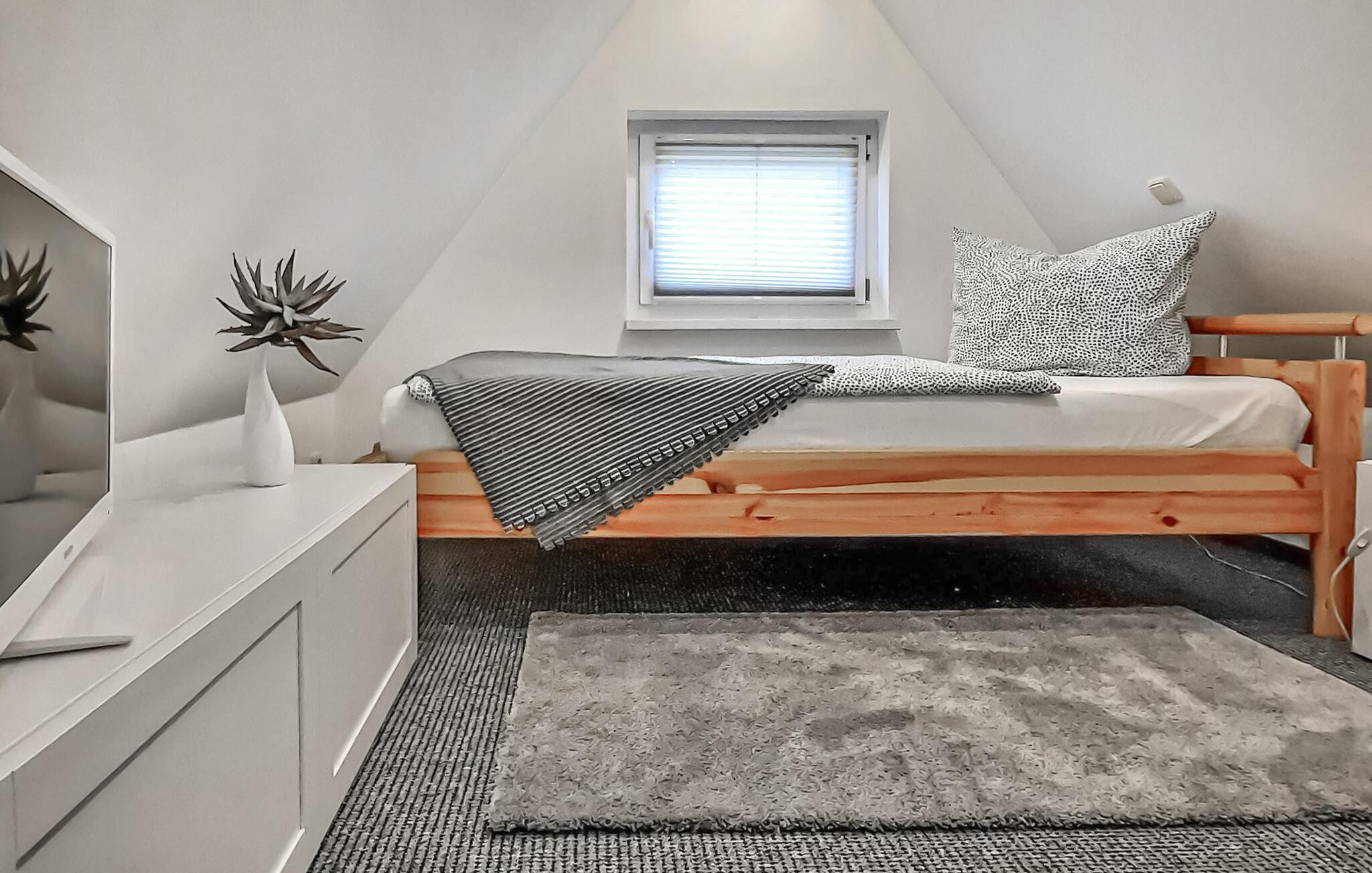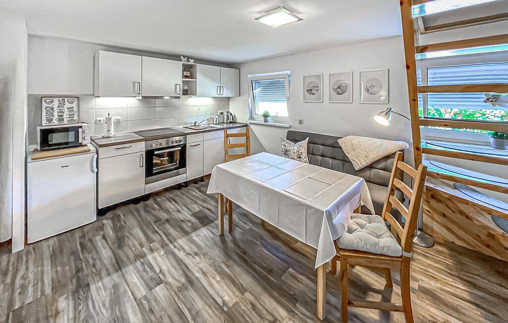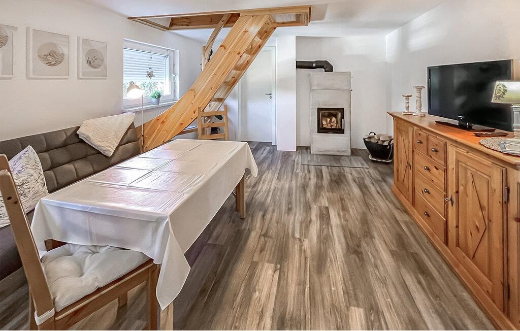 Das Nichtraucher-Ferienhaus über zwei Etagen befindet sich freistehend auf dem 1.400 qm großen Wohngrundstück des Eigentümers in ruhiger Orts- und Waldrandlage. Nach dem Umbau des ehemaligen Nebengebäudes zum Ferienhaus im Jahre 2016 ist die Außenfassade zwar noch nicht ganz fertiggestellt, die Gestaltung sowie die Ausstattung der Innenräume sind jedoch sehr ansprechend.Vorhanden sind im Erdgeschoss ein Wohn-/Essbereich mit offener Küchenzeile (Polstersitzbank, Esstisch, Flachbild-TV, E-Herd mit Backofen, Kühlschrank mit Tiefkühlteil, Mikrowelle, div. Küchengeräte), ein Bad mit ebenerdiger Dusche, WC und Fön sowie ein Abstellraum. Im Dachgeschoss (Zugang über eine Raumspartreppe) gibt es ein Schlafraum mit einem Doppelbett und Flachbild-TV und einen weiteren Schlafraum mit einem Einzelbett. Für kühle Tage steht im Erdgeschoss als einzige Heizmöglichkeit ein Kachelofen zur Verfügung (Erstausstattung Kaminholz gratis, danach 5 EUR/Kiepe). Im Außenbereich zur Verfügung stehen eine möblierte Sitzecke im Freien, eine weitere kleine und überdachte Sitzecke vor dem Eingangsbereich, Grill, sichere Unter-/Abstellmöglichkeit für mitgebrachte Fahrräder sowie Parkplatz. Im Gesamtpreis sind die Endreinigung, Bettwäsche, Handtücher sowie der Wasser- und Stromverbrauch bereits enthalten. Der Handyempfang im Ort ist schlecht, die Unterkunft besitzt jedoch einen eingeschränkten W-LAN-Empfang vom benachbarten Wohnhaus des Gastgebers.In diesem Objekt ist die Mitnahme von kleinen Hunden bis zu einer Schulterhöhe von max. 40 cm erlaubt.
