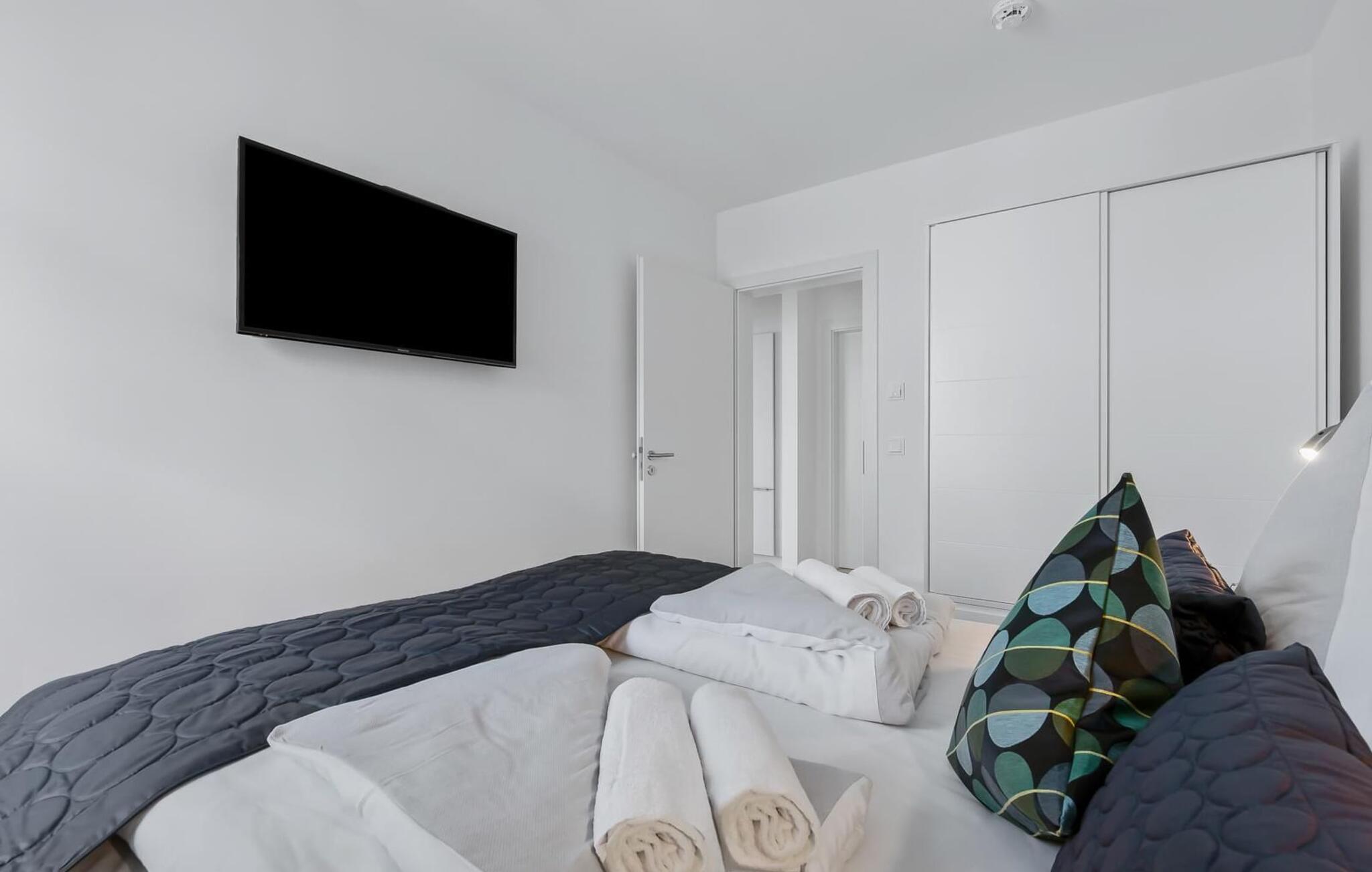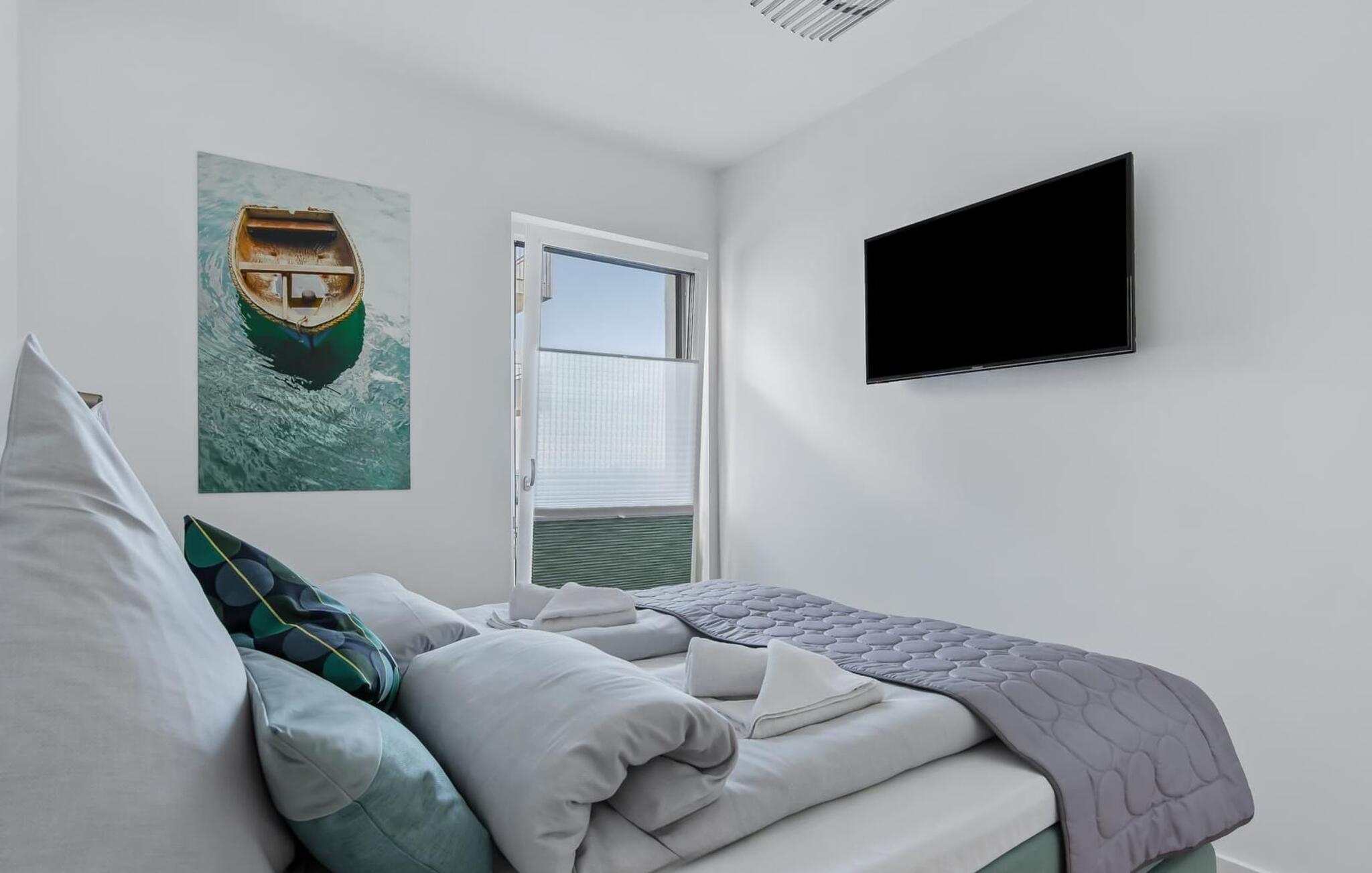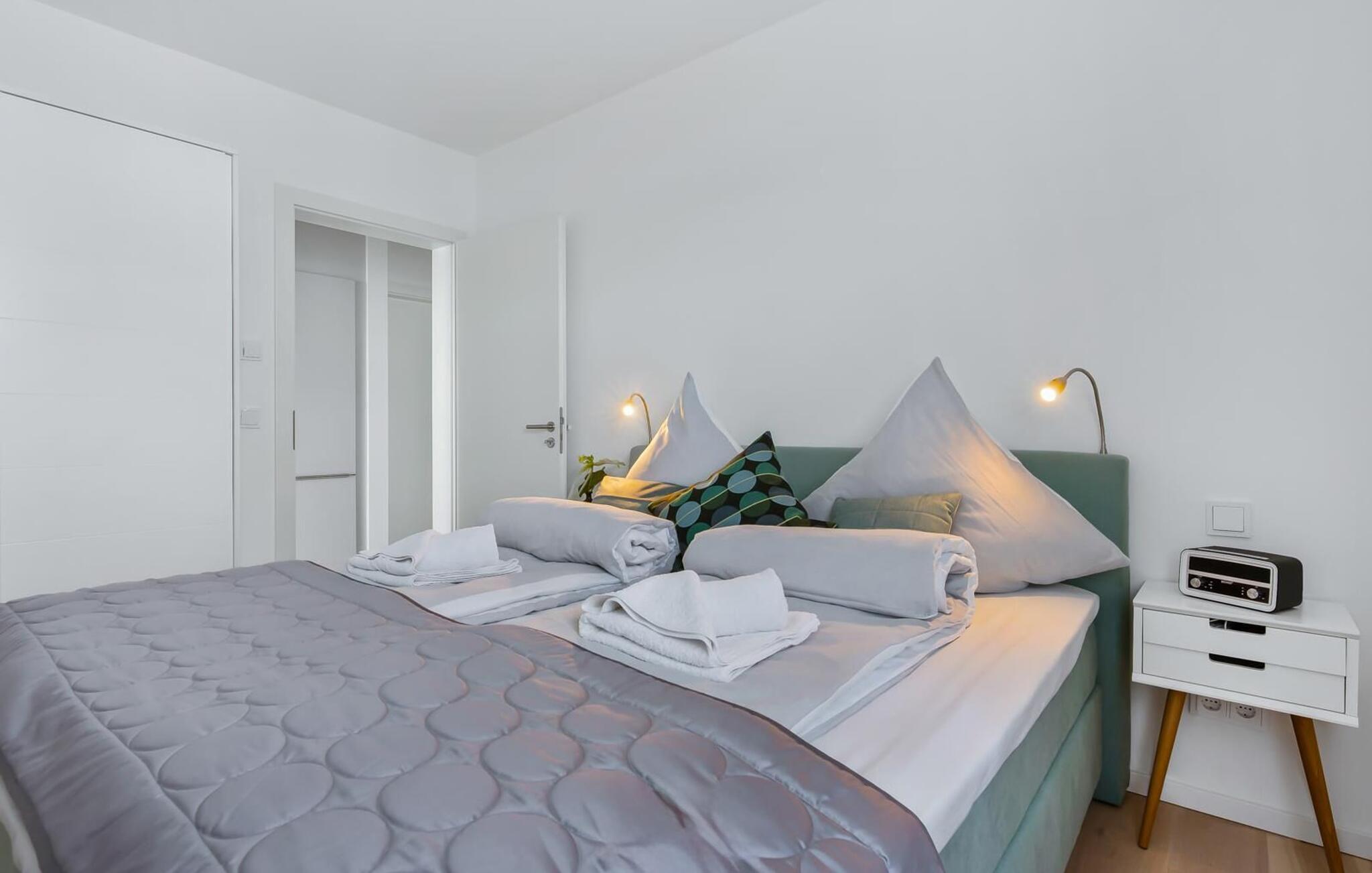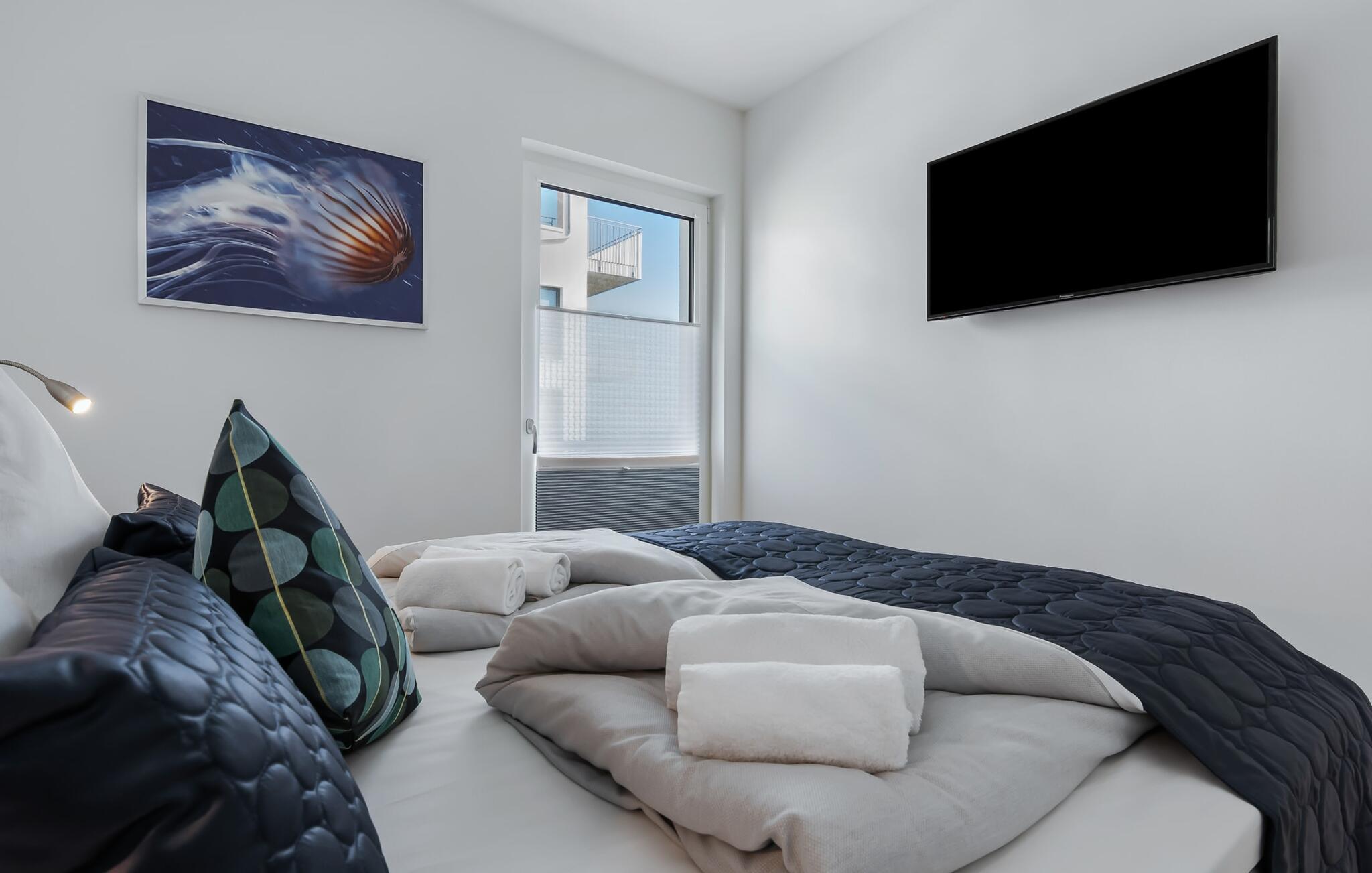 Der Luxus von Buhne 17 setzt sich weiter fort in den zwei Schlafzimmern, die jeweils mit einem Doppelboxspringbett möbliert sind. Ferner sind die Fenster mit verdunkelbaren Plissees und Insektenschutz versehen. Ungestörter und entspannter Schlaf ist vorprogrammiert.