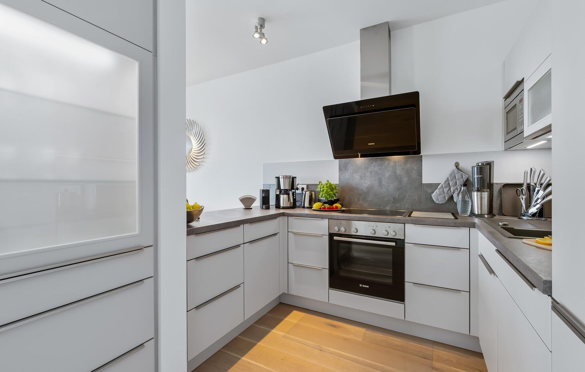 Die ebenfalls exklusive Küche und deren Ausstattung lässt einen wahrlich nicht an KüchenARBEIT denken, eher KüchenVERGNÜGEN!