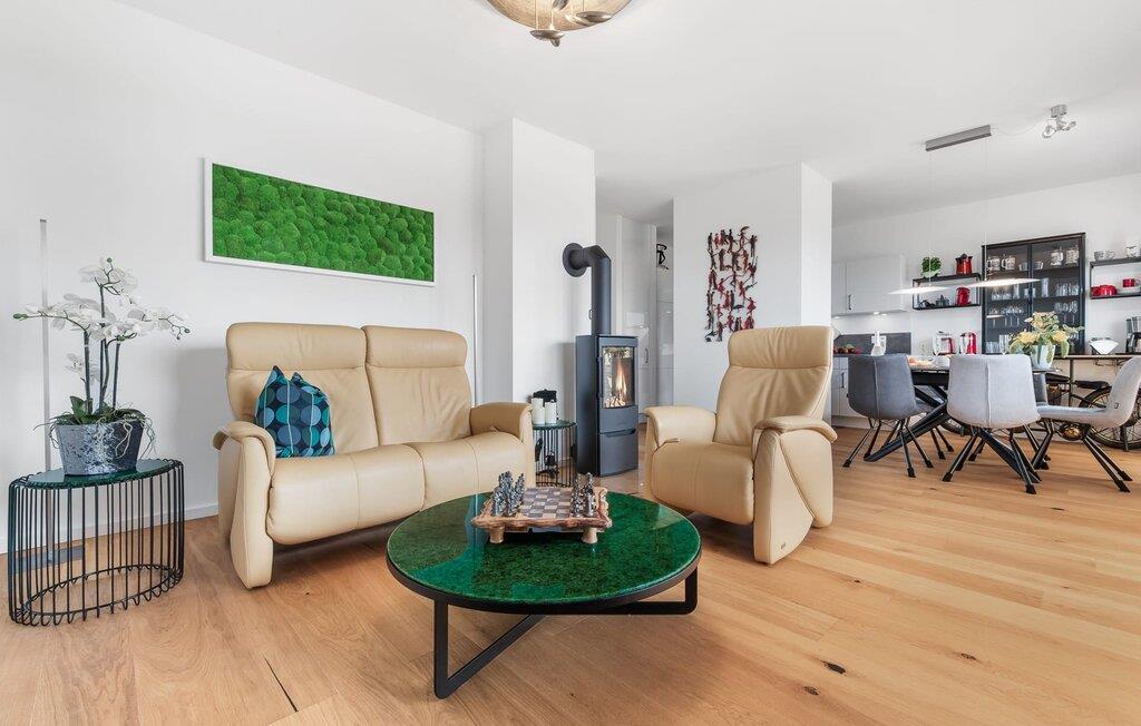 Modern eingerichtete Ferienwohnung mit Ostseeblick, Sauna und Kamin, direkt an der Strandpromenade in Olpenitz.