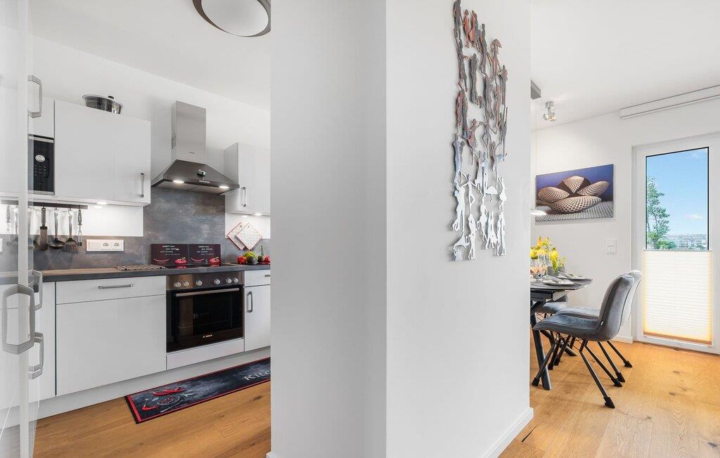 Tretet ein in eine moderne, sehr hochwertig und mit Liebe zum Detail eingerichtete Wohnung mit freiem Ostseeblick im 1. Stock eines Appartementhauses an der Strandpromenade.