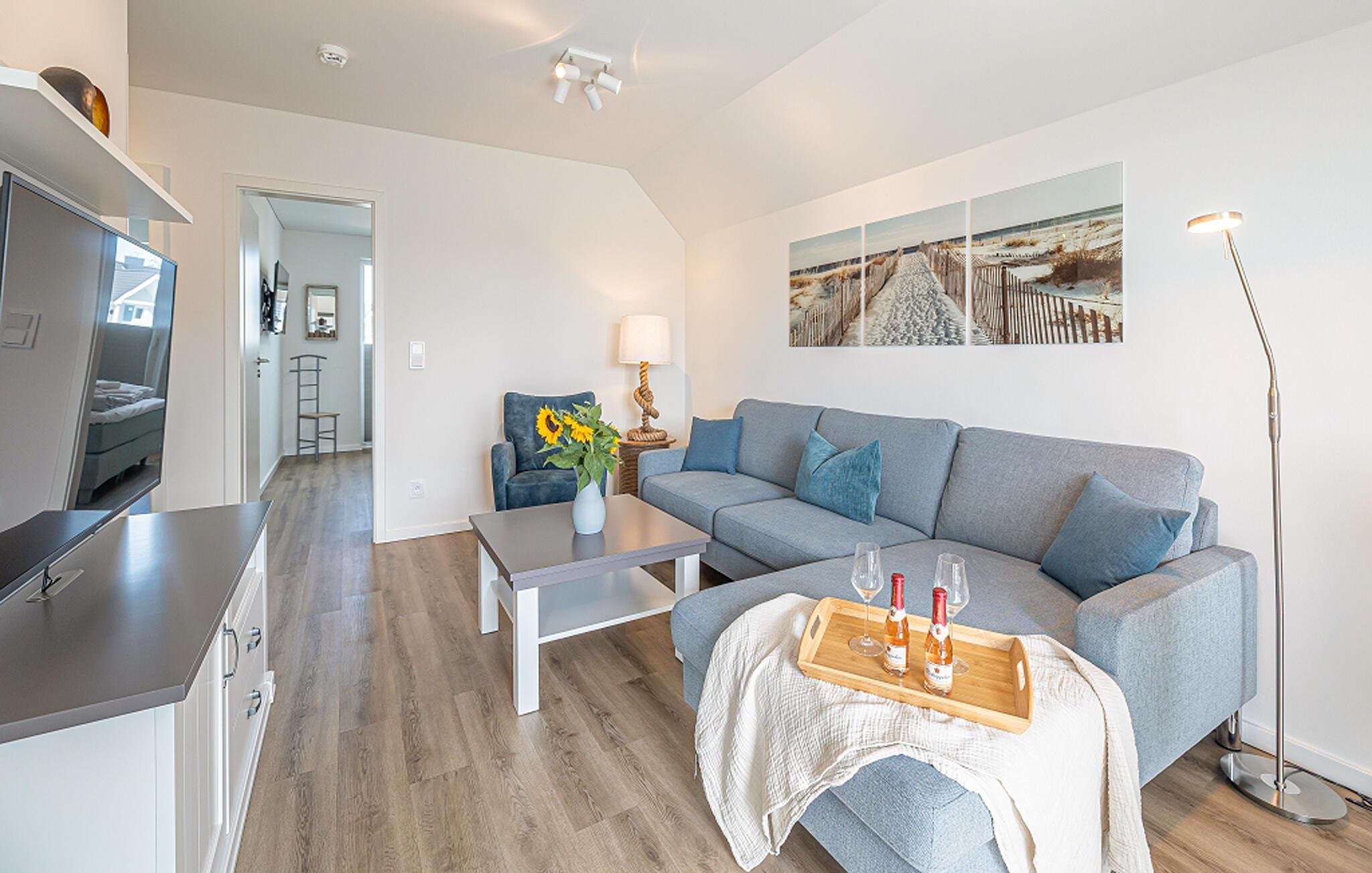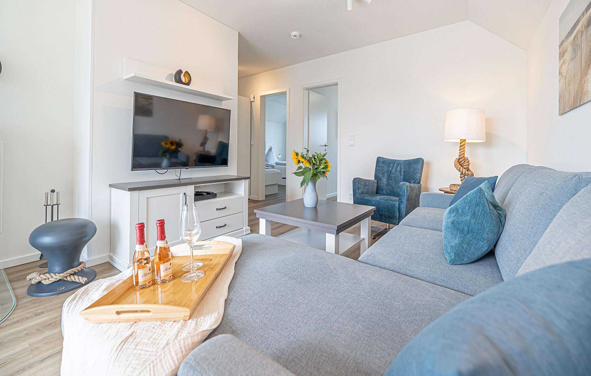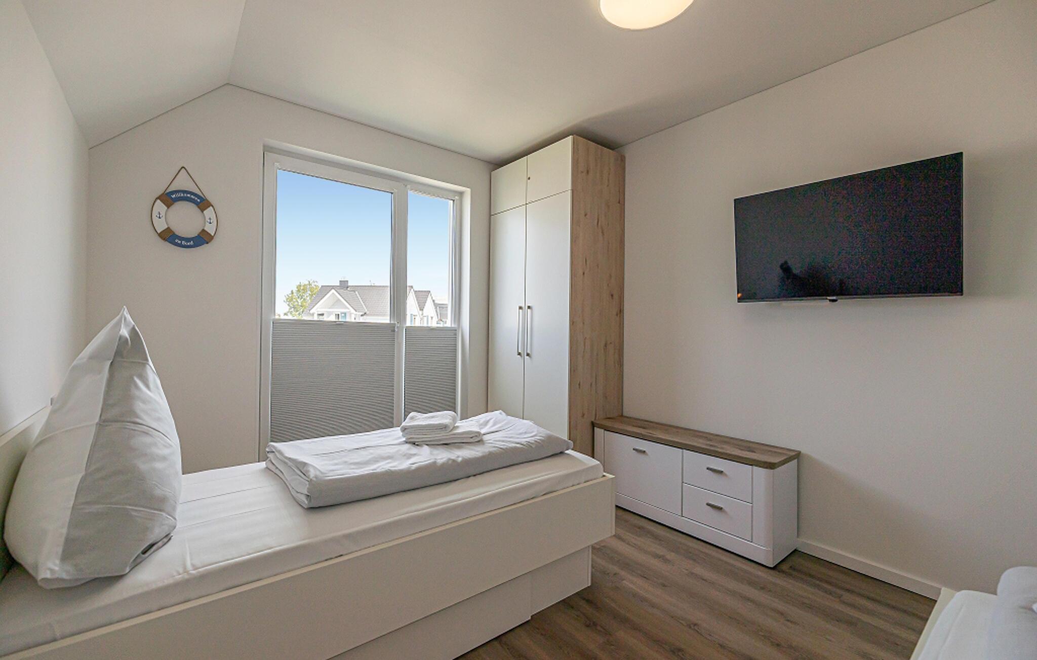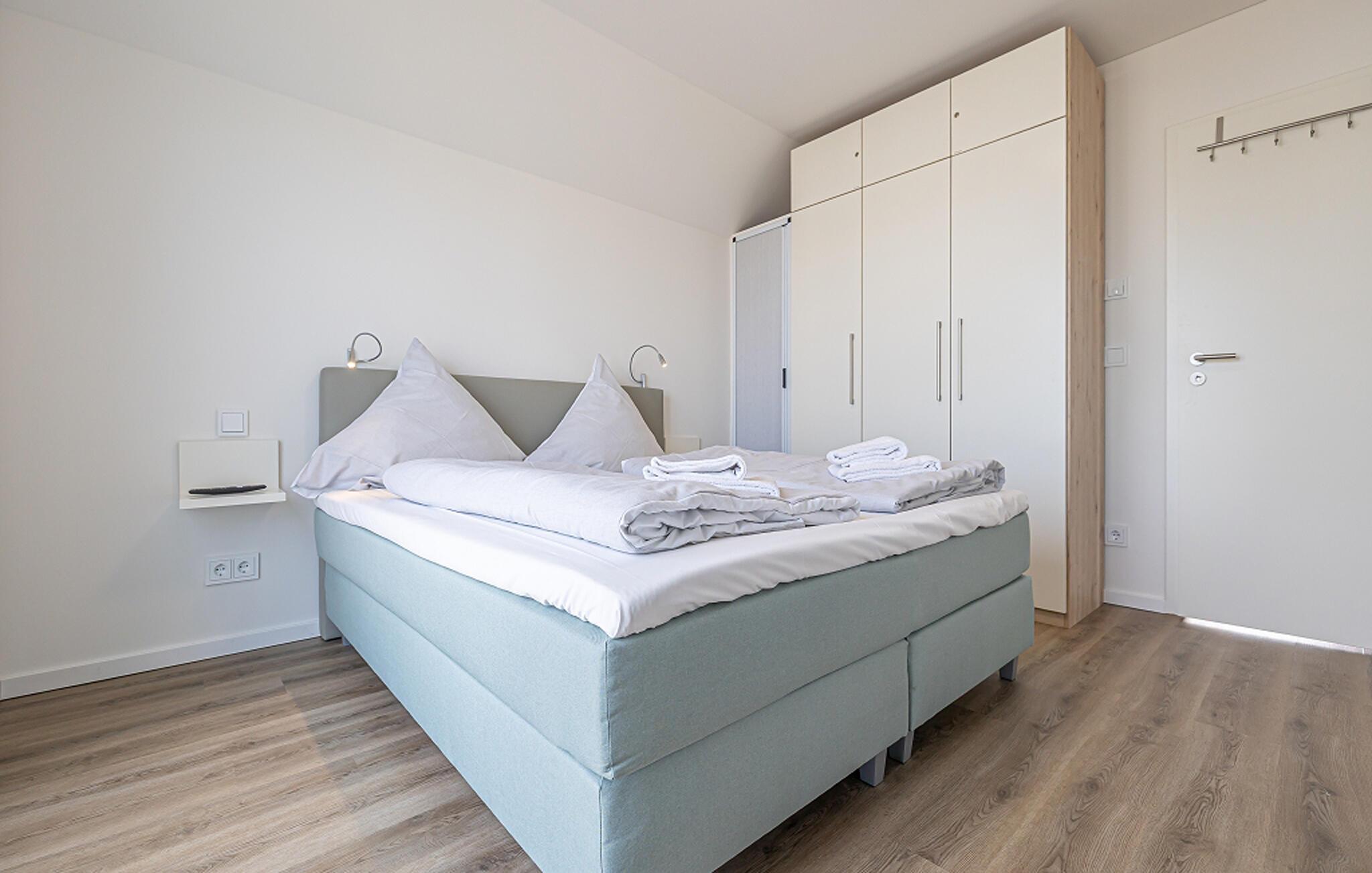 In dieser Ferienwohnung könnt ihr eure Seele baumeln lassen und die perfekte Auszeit vom Alltag nehmen. Die Unterkunft bietet Platz für bis zu vier Personen in zwei stilvoll eingerichteten Schlafzimmern. Das eine verfügt über ein gemütliches Boxspringbett als Doppelbett, das andere über zwei Einzelbetten. Erlebt hier einen tiefen und erholsamen Schlaf und wacht erfrischt auf, um einen weiteren Tag am Meer zu genießen.