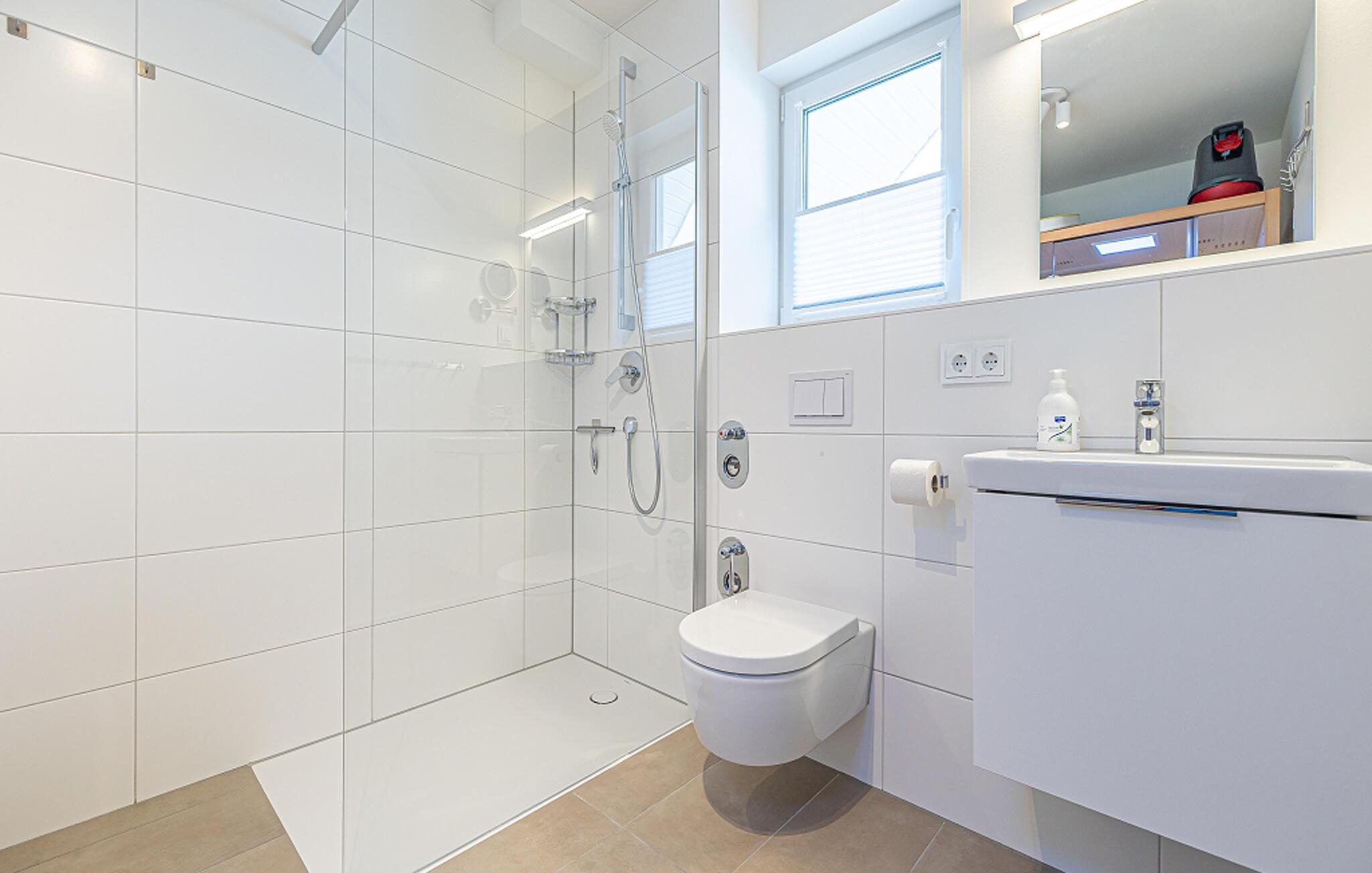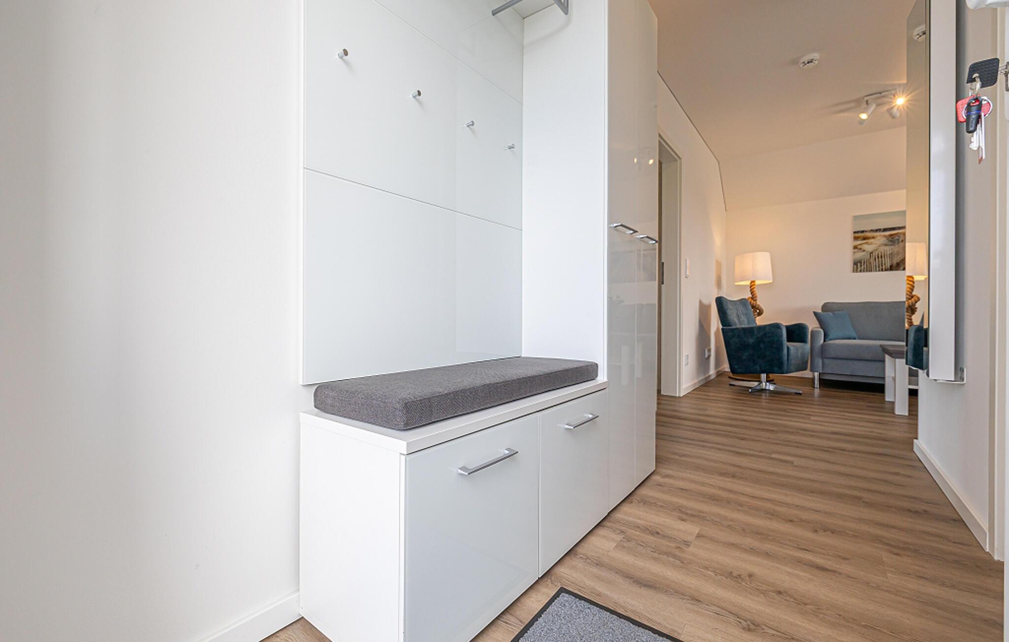 Das luxuriöse Bad ist mit einer bodengleichen Dusche und einer InfrarotSauna (Wärmekabine) ausgestattet. Hier könnt ihr euch nach einem langen Tag am Strand entspannen und den Alltag hinter euch lassen. Das geschmackvolle und hochwertige Interieur rundet das Gesamtbild der Ferienwohnung ab und lässt keine Wünsche offen.