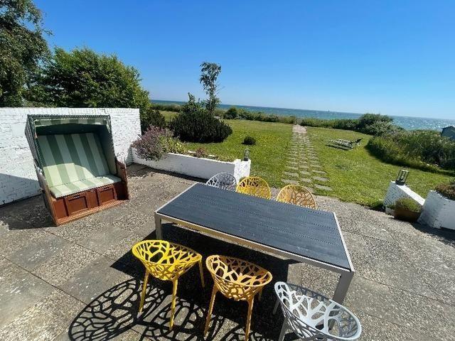 Großzügiges Ferienhaus mit Meerblick, Terrasse und direktem Zugang zum Badesteg an der Ostsee.
