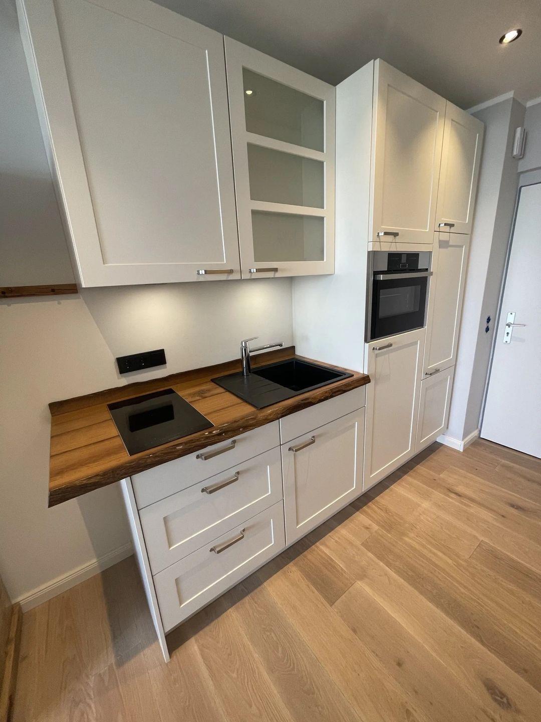 Moderne Einbauküche mit moderner Ausstattung ( Cerankochfeld, Backofen, Kühlschrank mit Gefrierfach Kaffeemaschine, Wasserkocher, Toaster, Mixer)