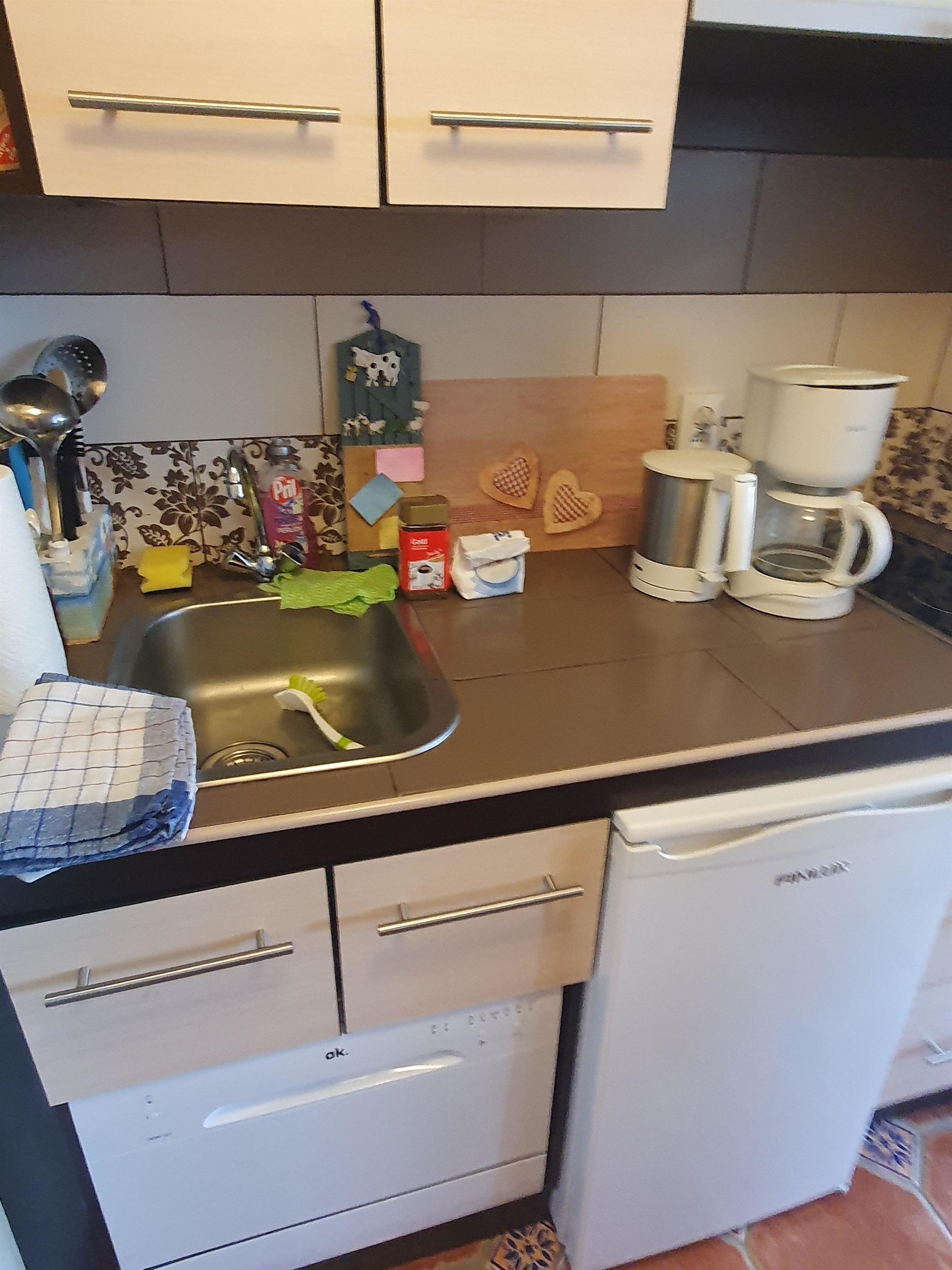 Küche: Mini Geschirrspüler, neu. Ceranherd (2Platten), Kühlschrank, Mikrowelle, neue Kaffeemaschine, neuer Toaster, Wasserkocher und ausreichend Geschirr. Bettwäsche und Handtücher müssen mitgebracht werden! Großes Bett mit einer durchgehenden Matratze! Föhn, Bügeleisen, Trockner zum Aufstellen! Wenn in Küche und Bad mit Lüfter zuviel gleichzeitig Strom verbraucht wird, kann es sein, dass der Strom ausfällt und auch Lüfter! Ich würde mich freuen, wenn es Ihnen gefällt und wenn Sie ein positives Feedback abgeben!